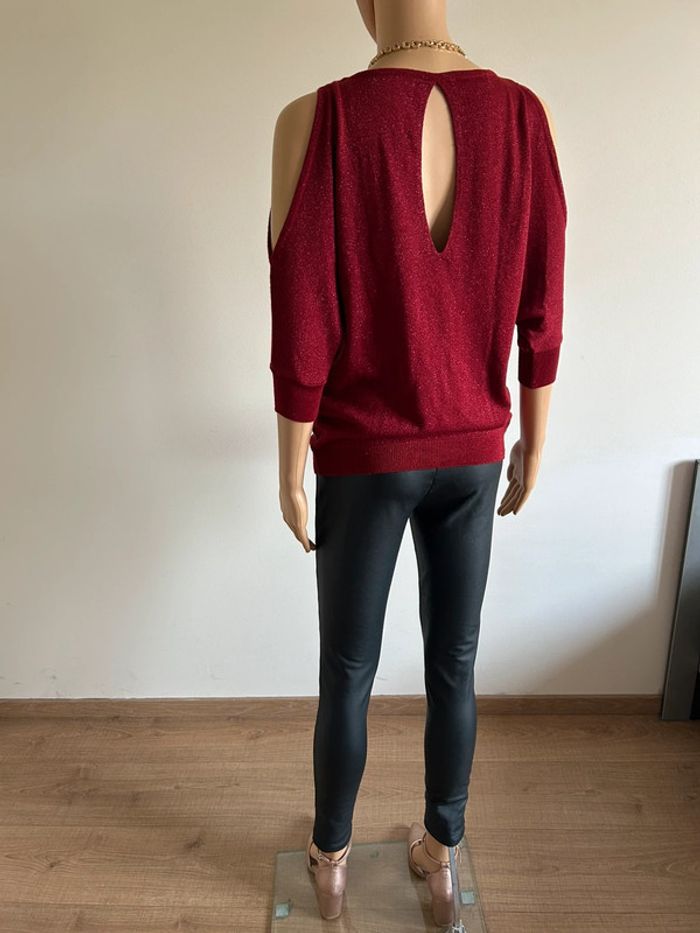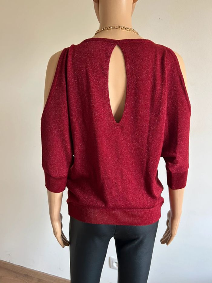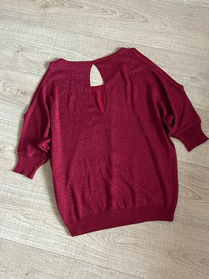 Pull rouge pailleté à manches courtes Morgan taille XS jamais porté - photo numéro 4