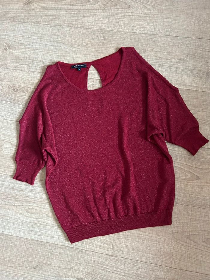 Pull rouge pailleté à manches courtes Morgan taille XS jamais porté - photo numéro 2