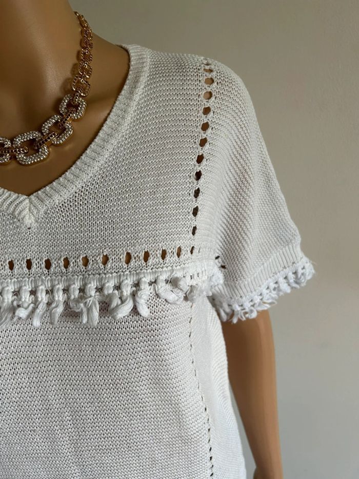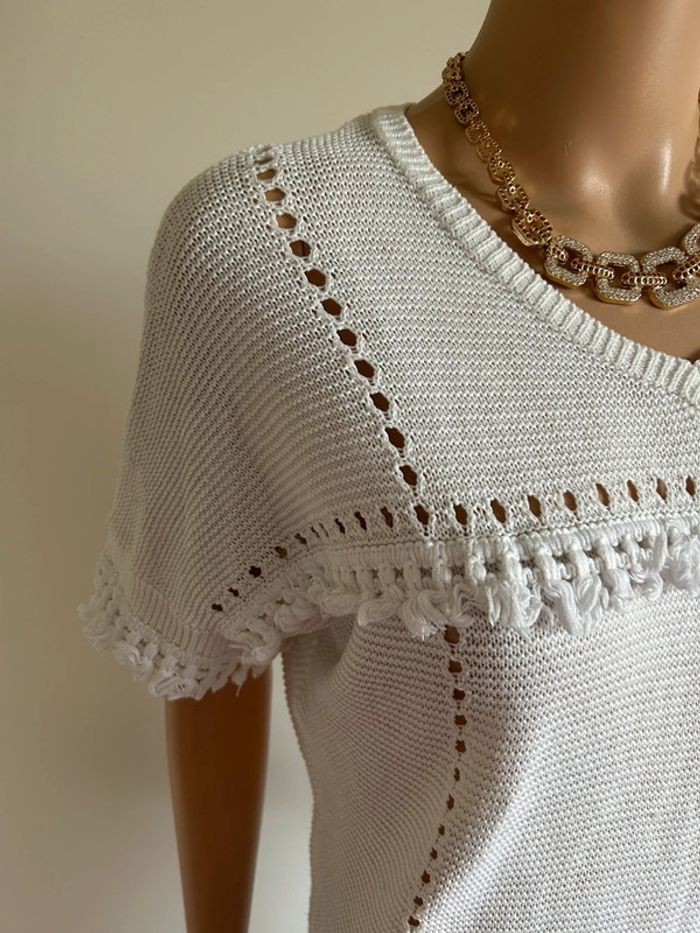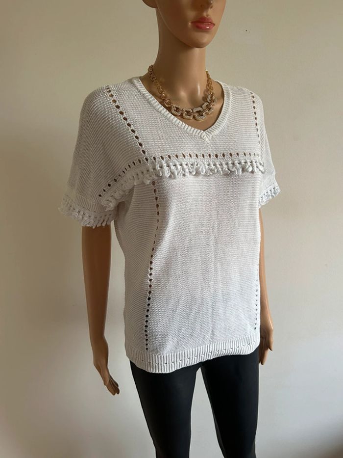 Joli pull blanc à manches courtes, de marque Vero Moda. Taille XS. Jamais porté, état neuf. aisselle à aisselle 53 cms et plus taille 45 cms et plus longueur depuis épaule 59 cms Le tissu est extensible 55% coton et 45% acrylique Le prix reste négociable dans la limite du raisonnable. Un petit cadeau dans le colis 🌸 (Boîte 7)