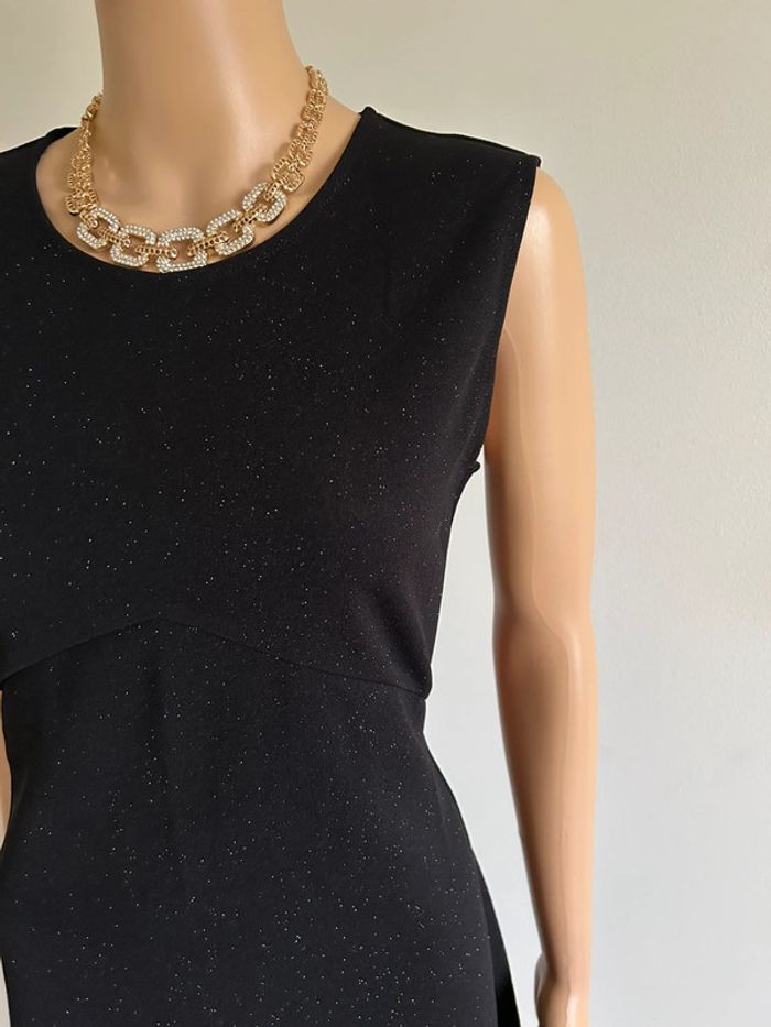 Magnifique robe noir et pailletée sans manches, de marque Molly Bracken. Fermeture dorée dans le dos. Taille M. Elle est neuve avec étiquette (valeur 56€). aisselle à aisselle 46 cms et plus taille 39 cms et plus longueur depuis épaule 90 cms Le tissu est extensible 97% polyester et 3% elasthanne Le prix reste négociable dans la limite du raisonnable. Un petit cadeau dans le colis 🌸 (Boîte 45)