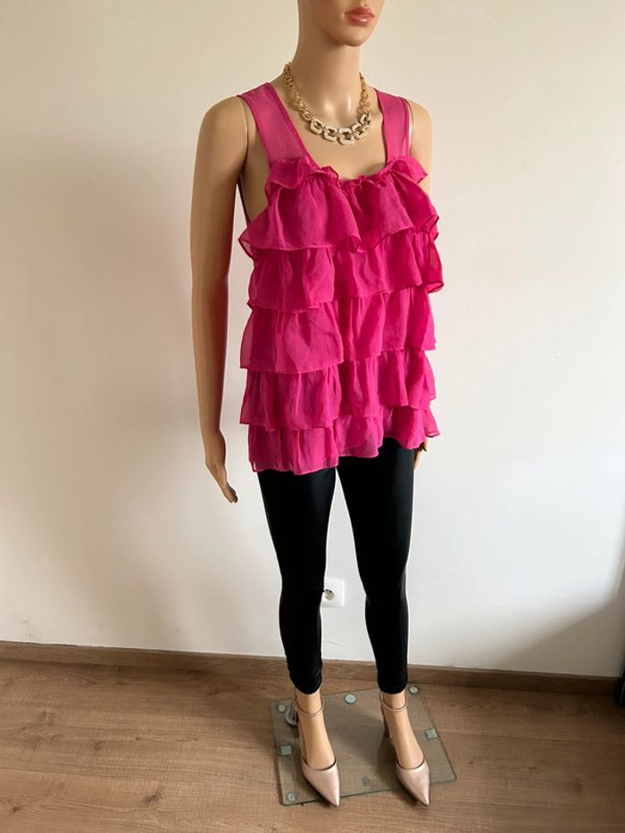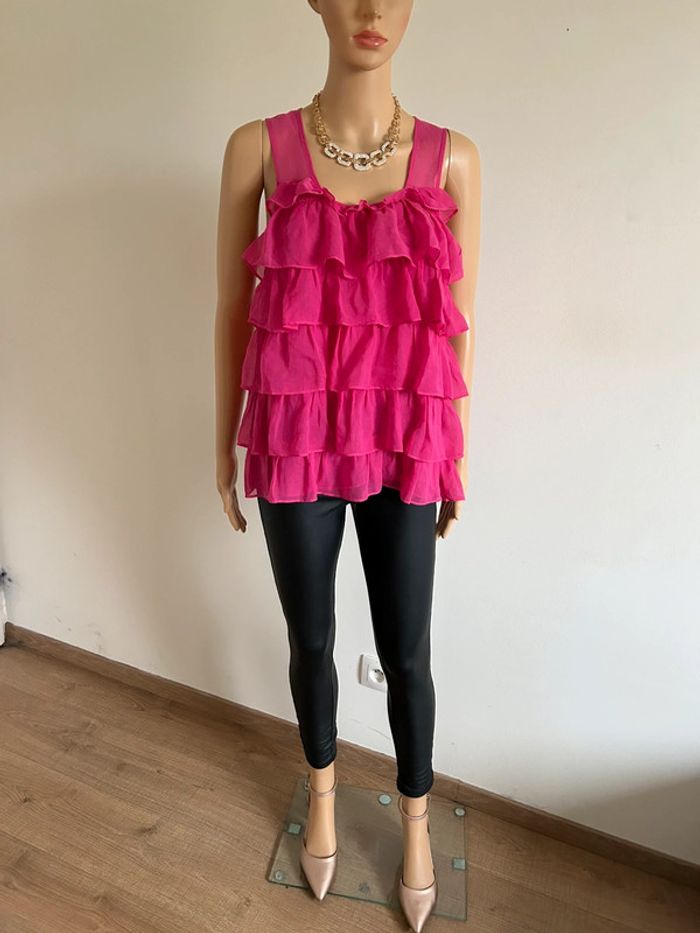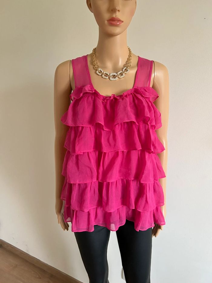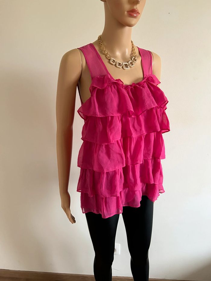 Top rose avec volants Monoprix taille 38 excellent état - photo numéro 2