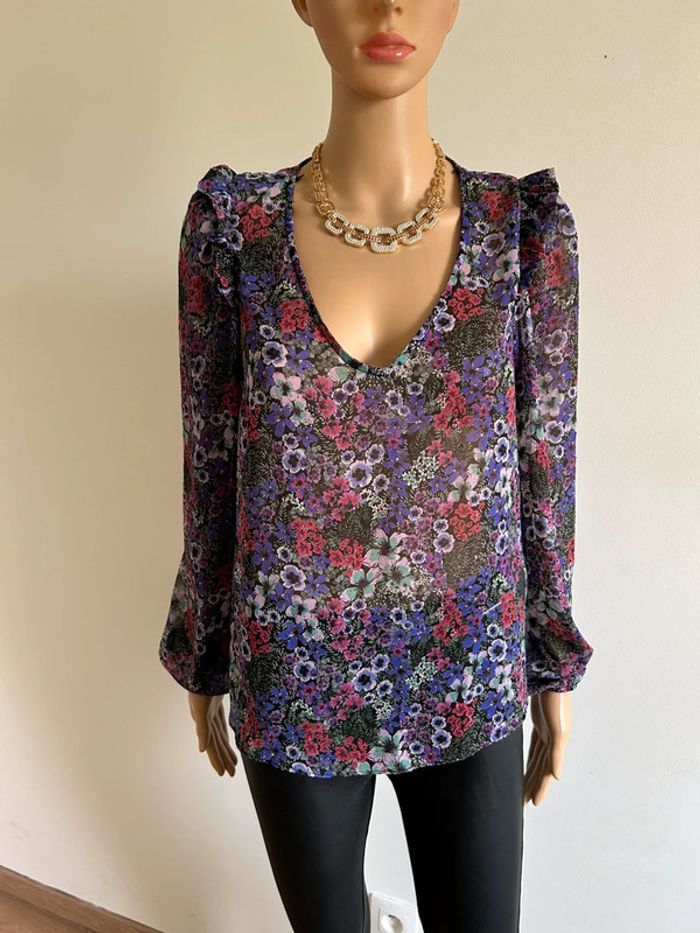Blouse fleurie à manches longues Naf Naf taille 36 jamais portée - photo numéro 3