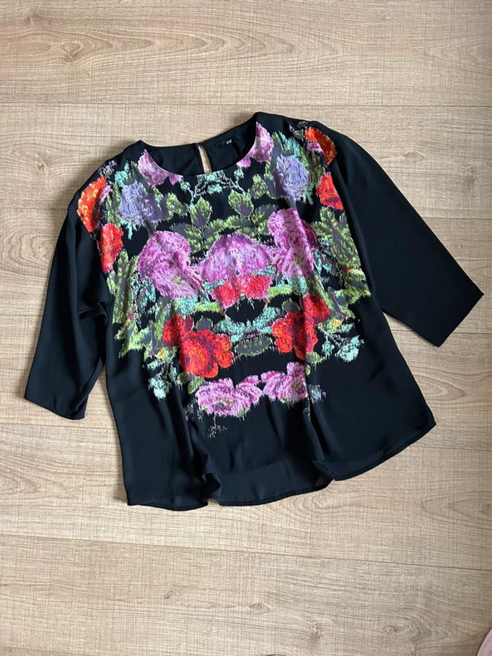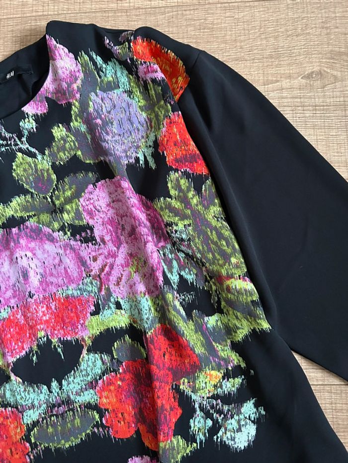 Blouse noire et fleurie H&M taille 38 excellent état - photo numéro 1