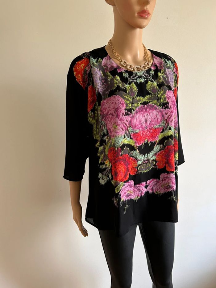 Blouse noire et fleurie H&M taille 38 excellent état - photo numéro 5