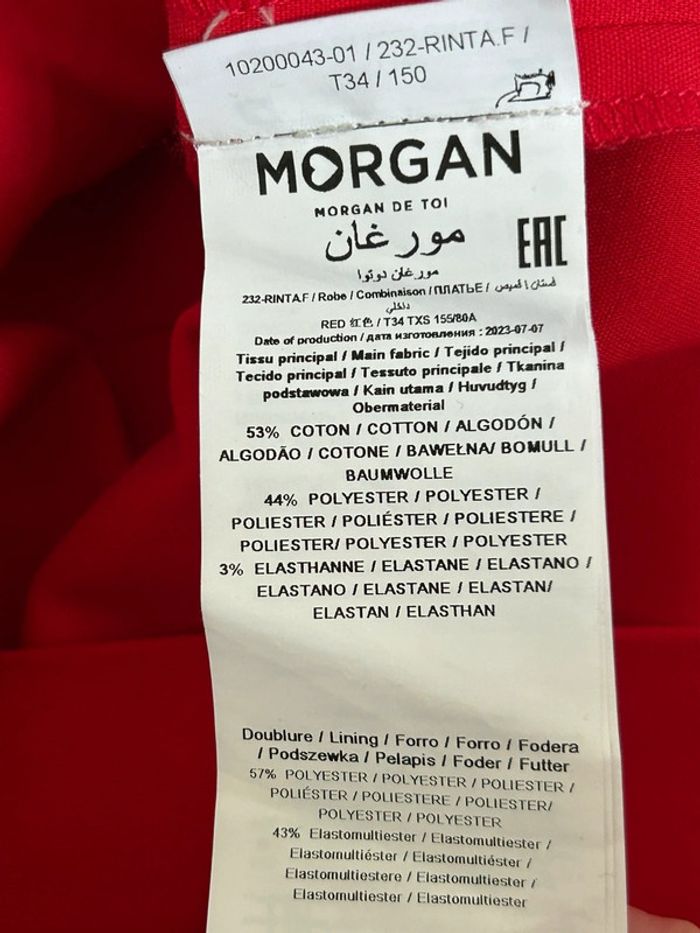 Magnifique robe rouge à manches courtes, de marque Morgan. Fermeture dans le dos. Taille 34. Elle est neuve avec étiquette (valeur 70€). aisselle à aisselle 43 cms épaule à épaule 35 cms taille 33 cms longueur depuis épaule 87 cms 53% coton, 44% polyester et 3% elasthanne Le prix reste négociable dans la limite du raisonnable. Un petit cadeau dans le colis 🌸 (Boîte 11)