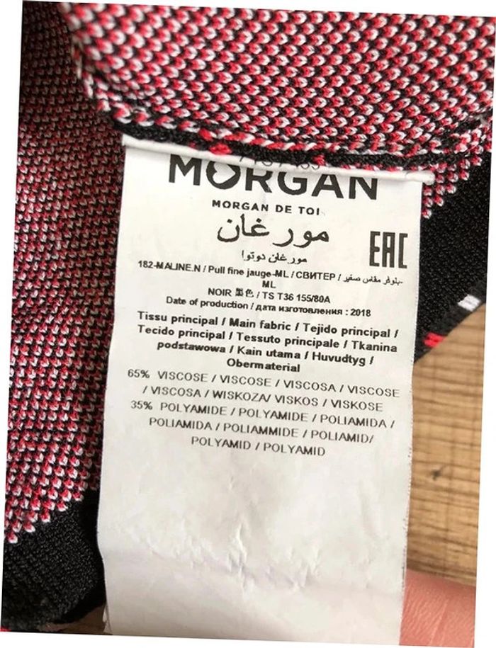 Pull imprimé noir blanc et rouge Morgan taille S jamais porté (léger défaut) - photo numéro 13