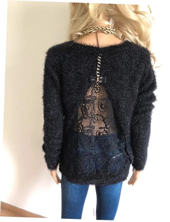 Pull noir pailleté tout doux ave dentelle She's Secret taille unique jamais porté - photo numéro 16