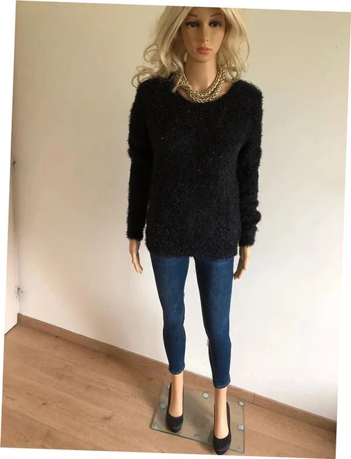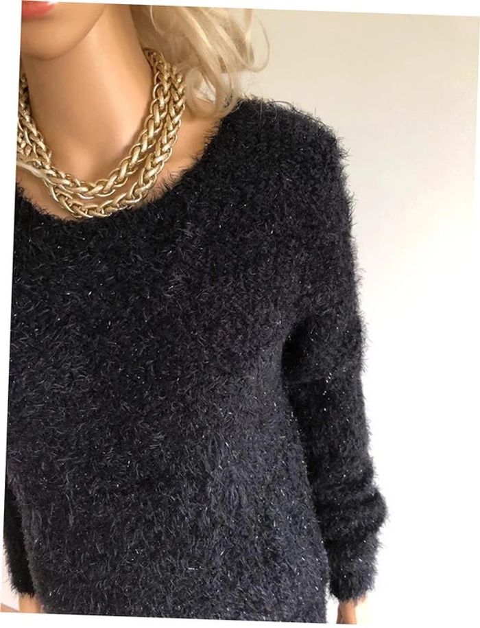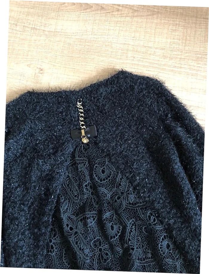 Pull noir pailleté tout doux ave dentelle She's Secret taille unique jamais porté - photo numéro 13