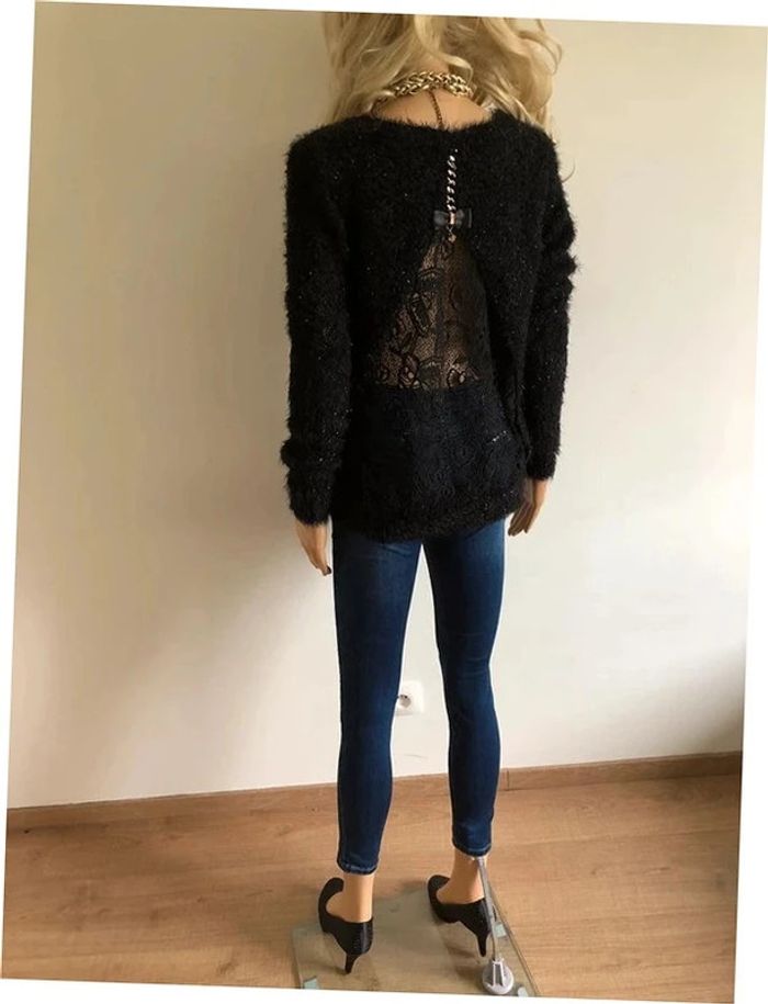 Pull noir pailleté tout doux ave dentelle She's Secret taille unique jamais porté - photo numéro 12