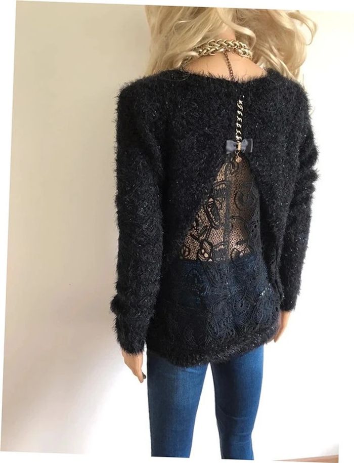 Pull noir pailleté tout doux ave dentelle She's Secret taille unique jamais porté - photo numéro 14