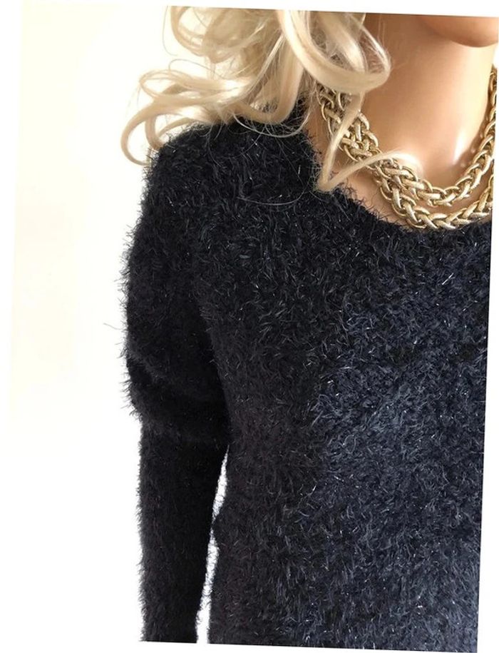 Magnifique pull noir pailleté tout doux, avec de la dentelle dans le dos. Taille unique qui convient jusqu’au 38. Jamais porté car pas mon style, état neuf. aisselle à aisselle 46 cms et plus épaule à épaule 38 cms et plus longueur manches 61 cms taille 42 cms et plus longueur depuis épaule 58 cms Le tissu est extensible 80% polyester, 10% acrylique et 10% polyamide Le prix reste négociable dans la limite du raisonnable. Un petit cadeau dans le colis.