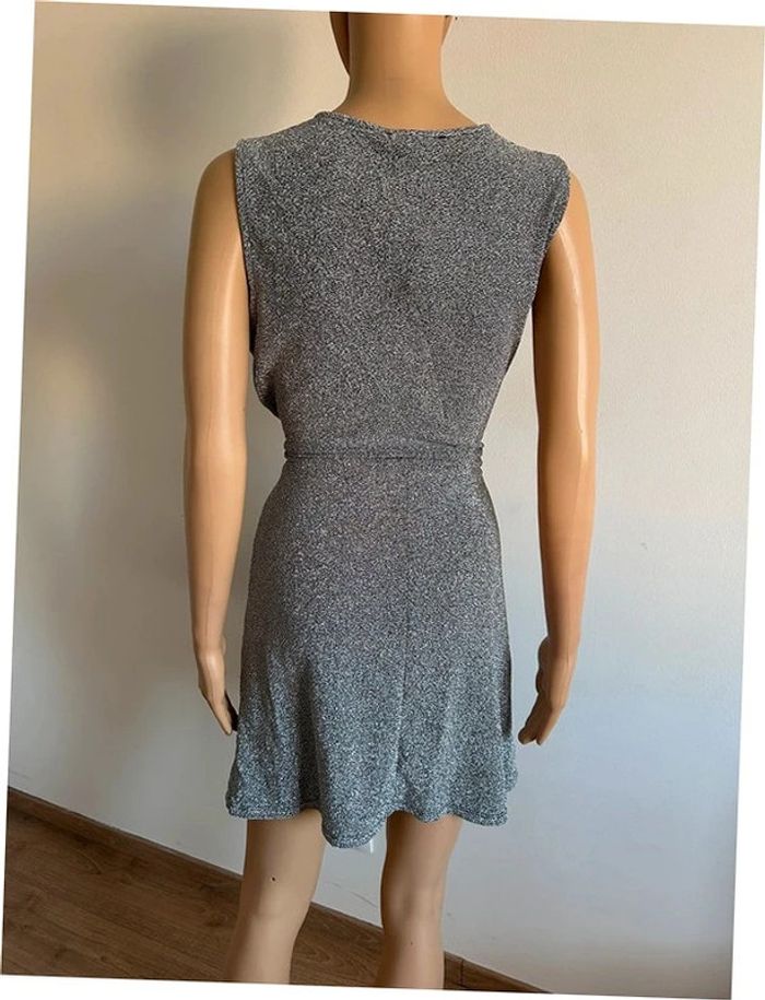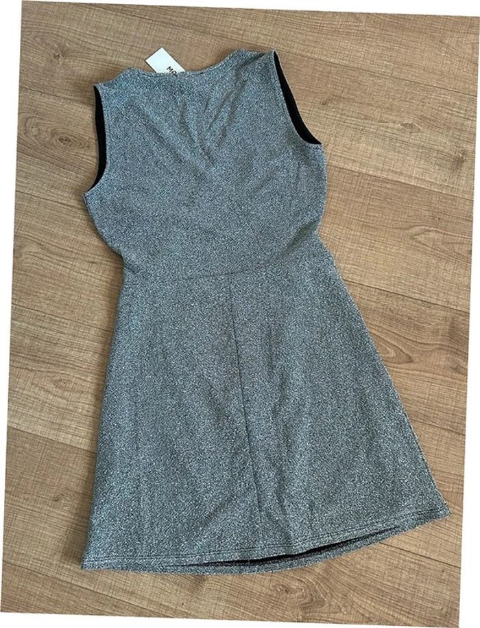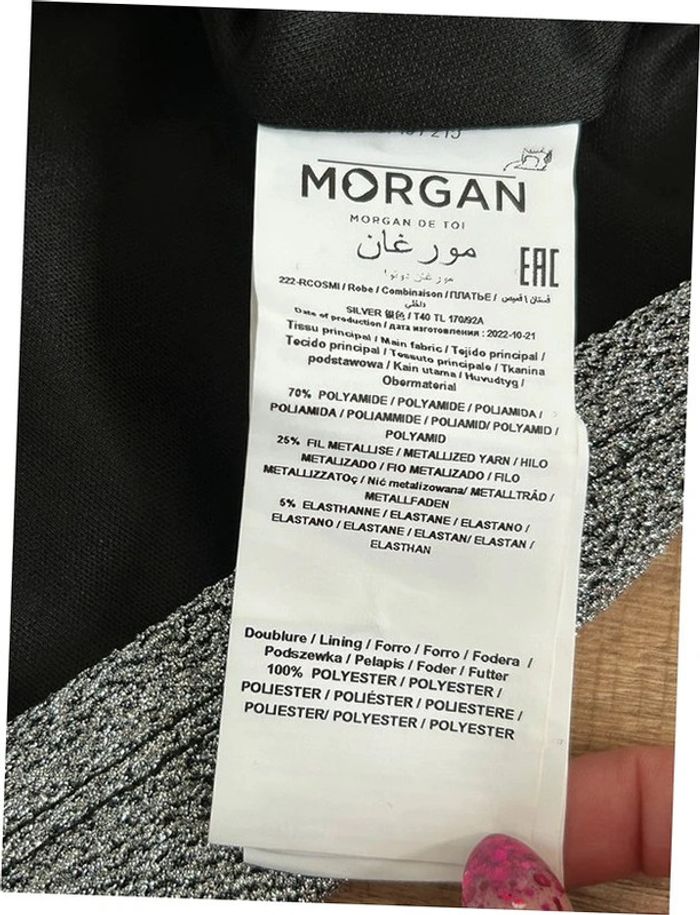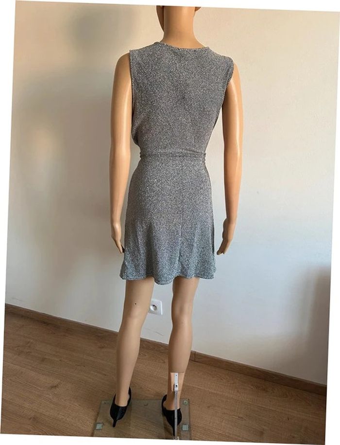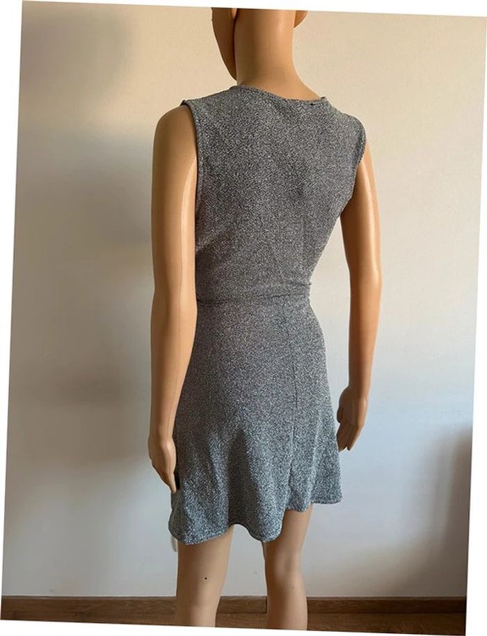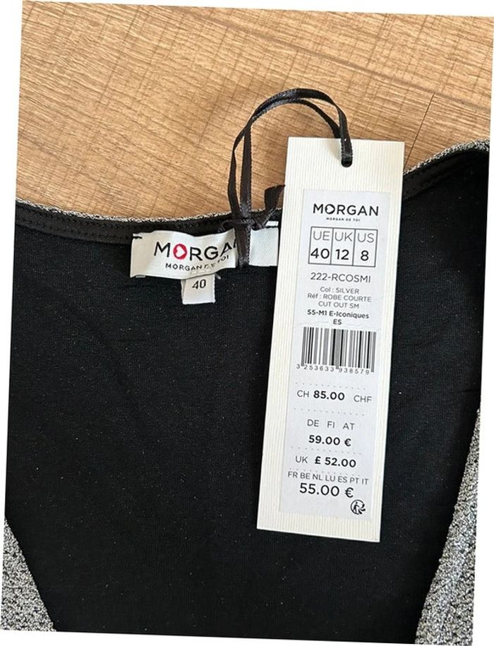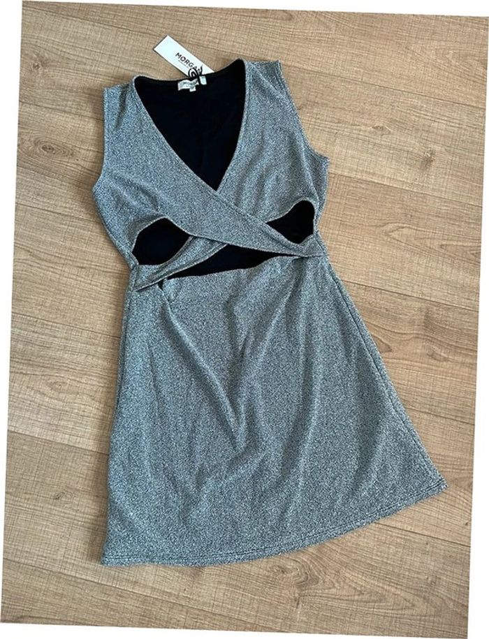 Magnifique robe argentée pailletée sans manches, de marque Morgan.