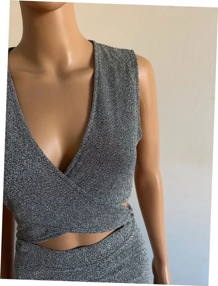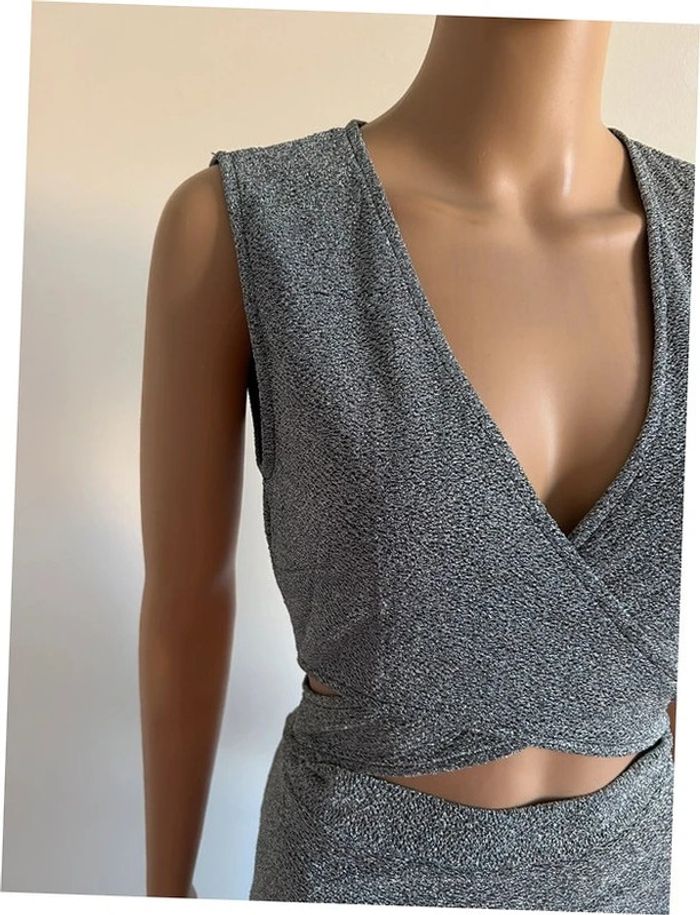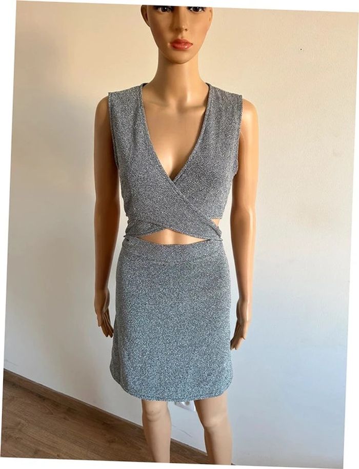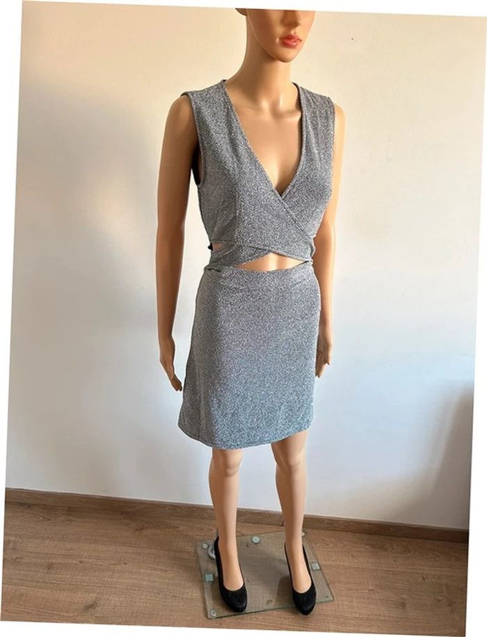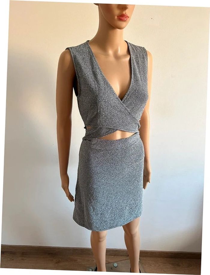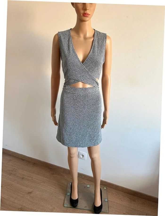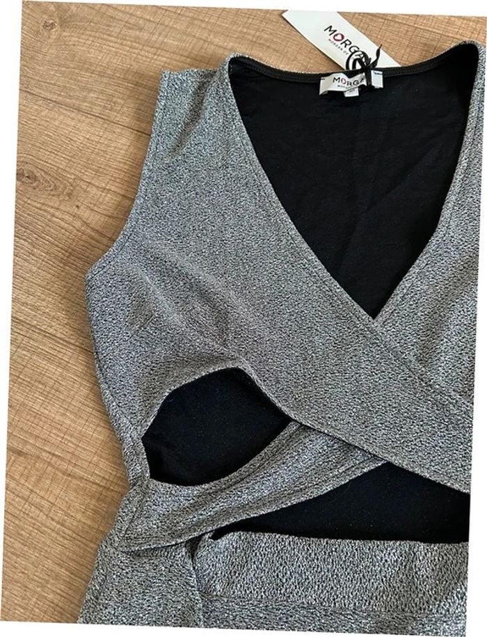 Magnifique robe argentée pailletée sans manches, de marque Morgan.