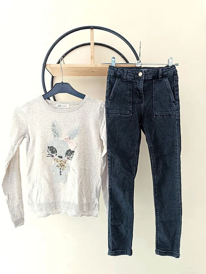 8 ans ensemble pull h&m (6-8 ans) et pantalon jean tape a l'oeil (7 ans)