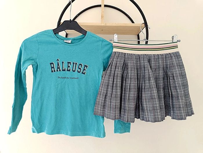 8 ans ensemble teeshirt tape a l'oeil et jupe palomino