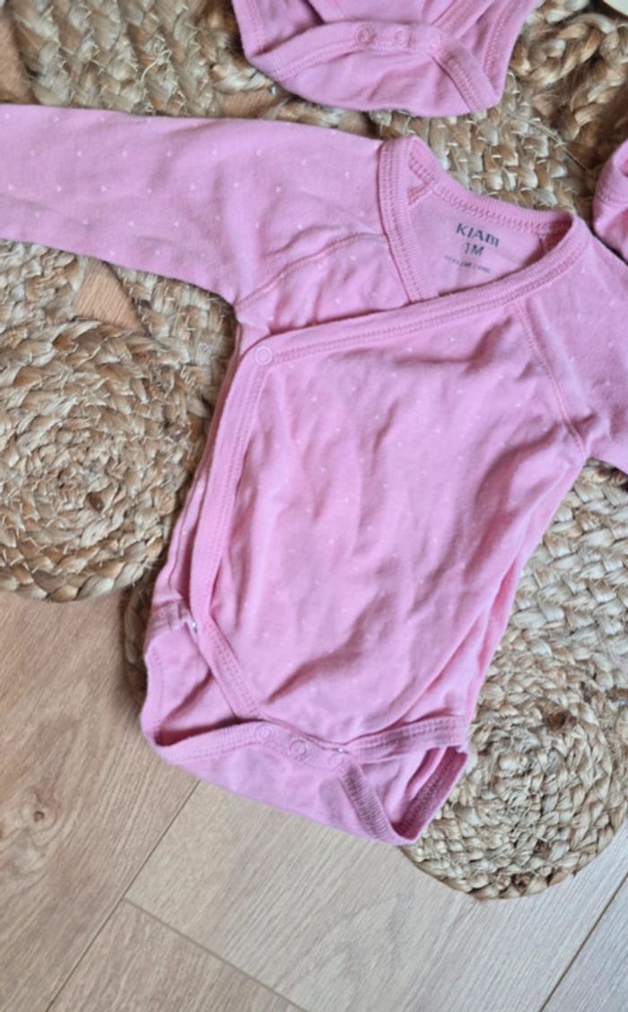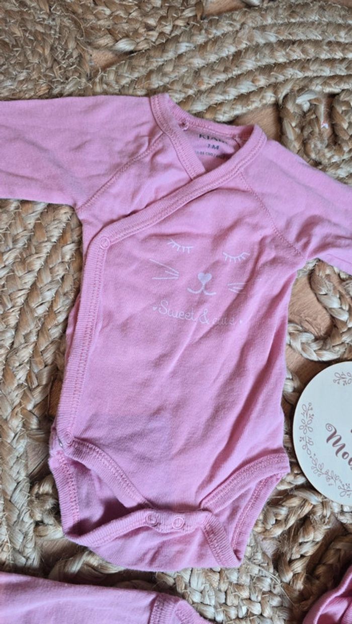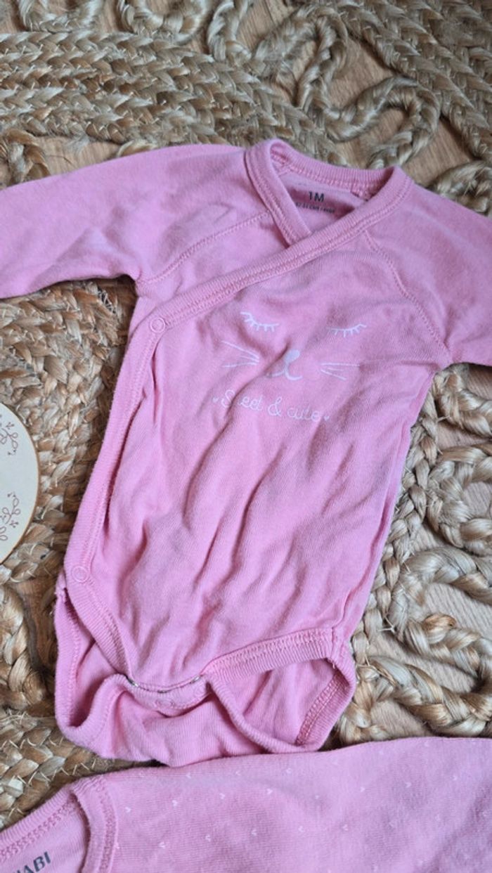 Lot de 3 body Kiabi , rose, ouverture sur le devant avec pressions, tête de chat, taille 1 mois, porté mais reste en bon état #body #bébéfille #bébéfille #lot #bodies #1mois #lot