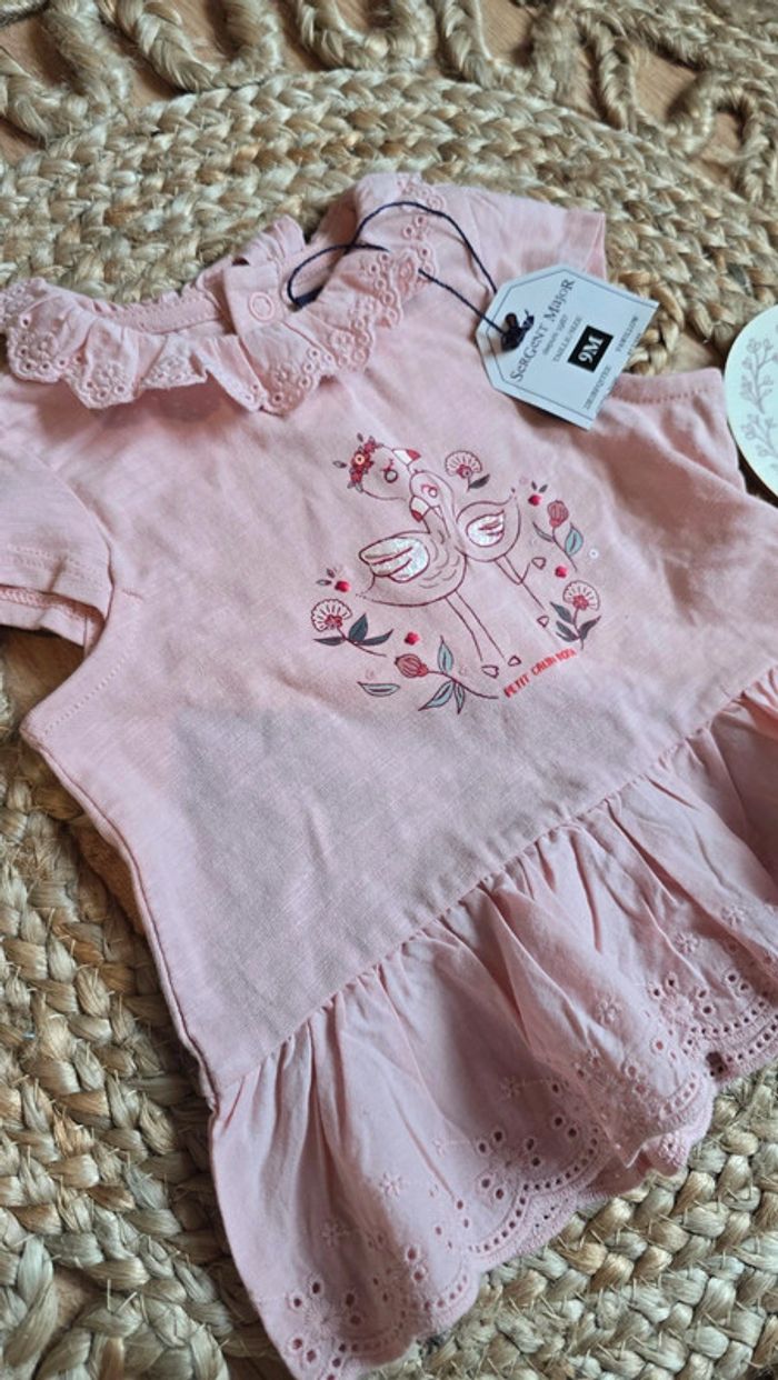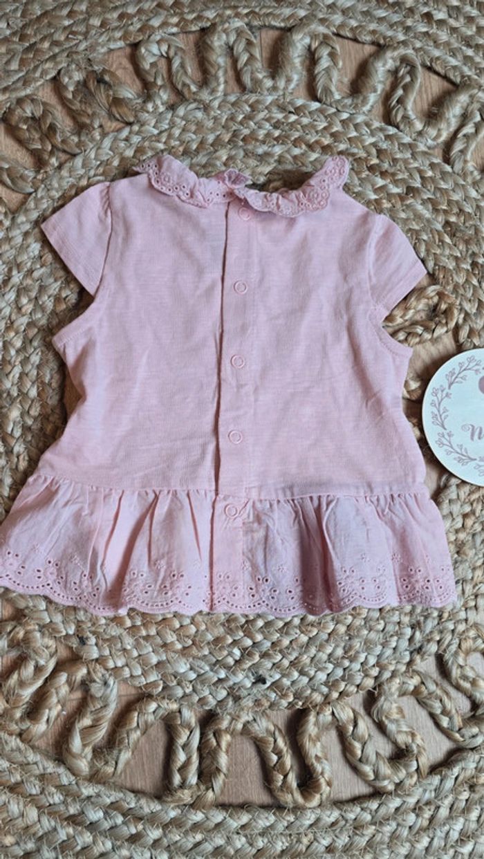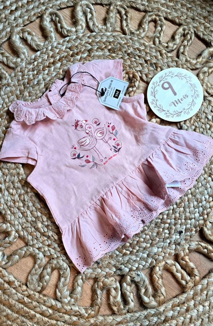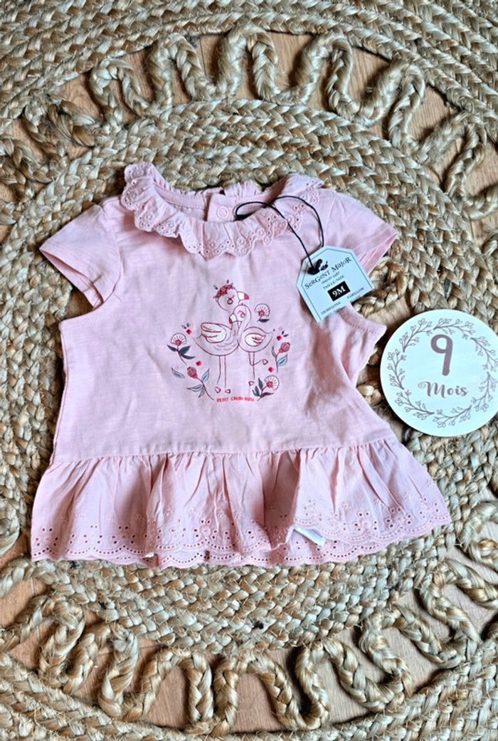 T shirt Sergent Major rose lila, col à volants dentelle, pressions au dos, taille 9 mois, neuf avec étiquette #tshirt #manchescourtes #été #lot #bébé #lot #9mois