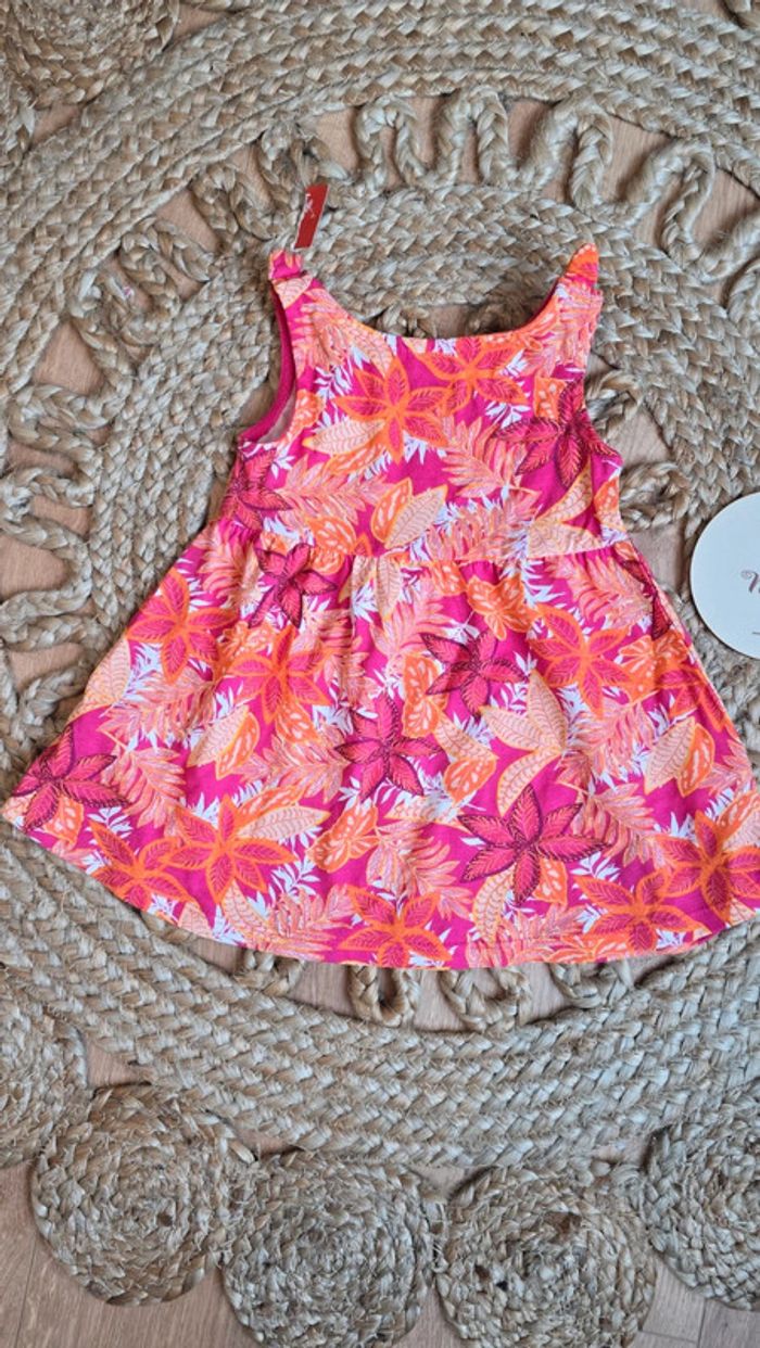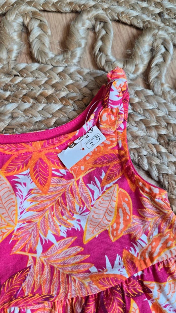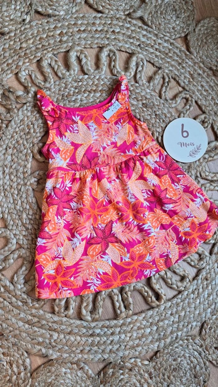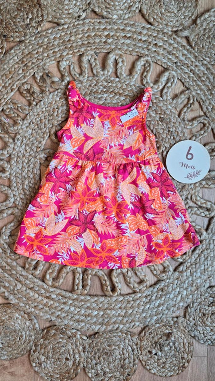 Robe rose orangé imprimé feuillage, noeud au bretelles, taille 6 mois, neuve #robe #bébé #bébéfille #lot #6mois #été