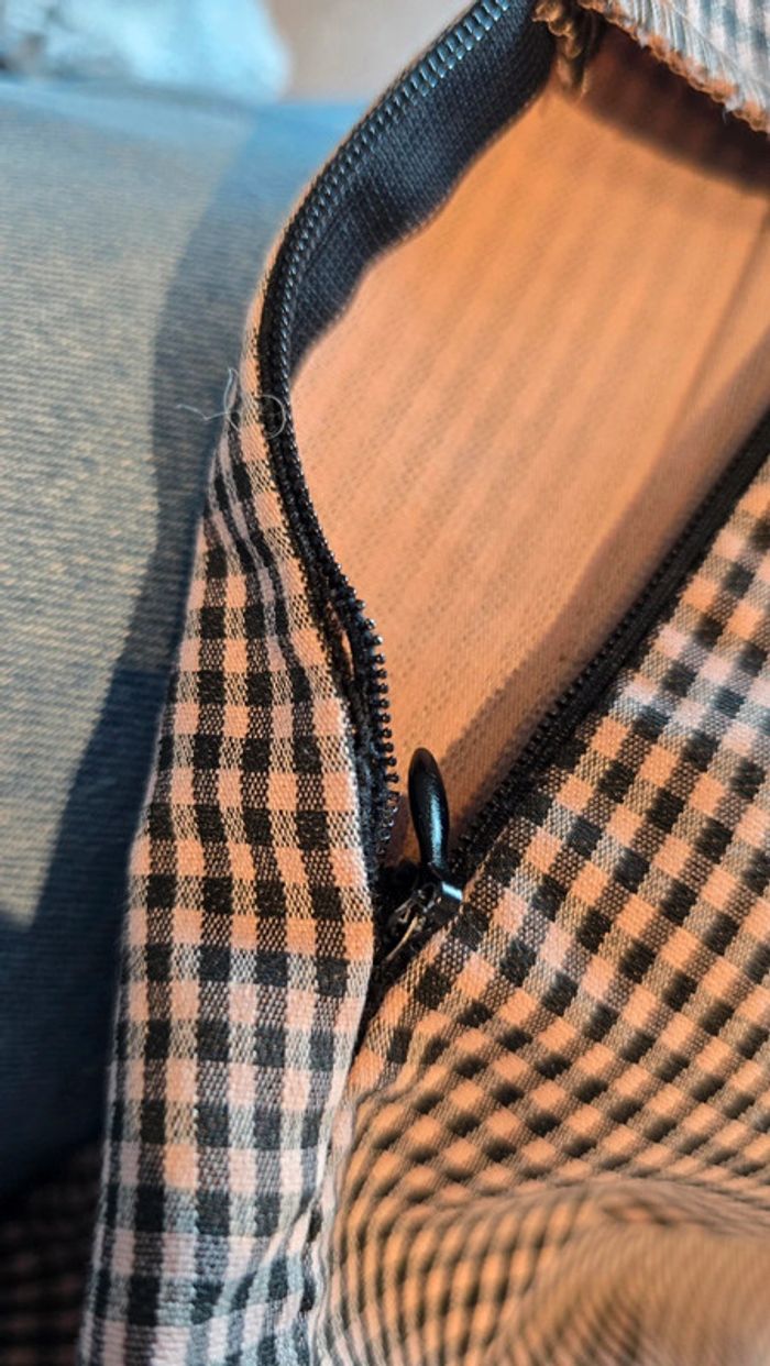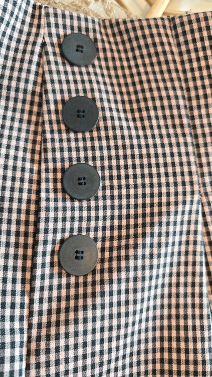 Short Zara, imprimé petit carreaux noir et beige rosé, plissé avec boutons à l'avant, poche style costume à l'arrière, petit défaut sur le bas de la fermeture à l'achat décousu, taille S 36, mis une seule fois #short #zara #carreaux