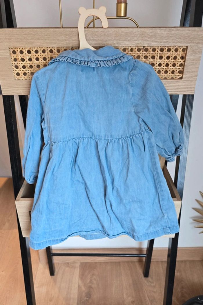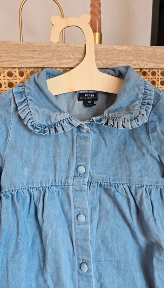 Robe Kiabi en jean bleu clair, col replié, boutons sur le devant, taille 9 mois, très bon état #kiabi #robe #jeans #lot #bébéfille