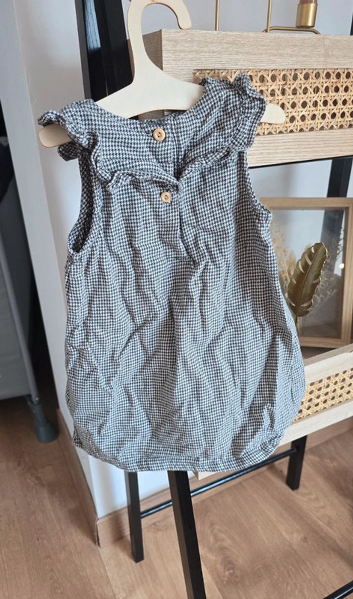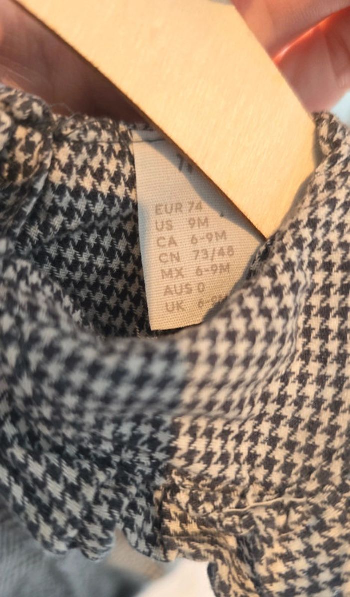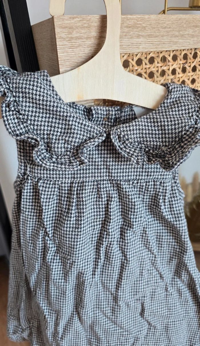 Robe H&M imprimé carreaux pied de poule noir et gris, col replié, boutons au dos, taille 6/9 mois, très bon état #robe #bébé #bébéfille #hm #lot