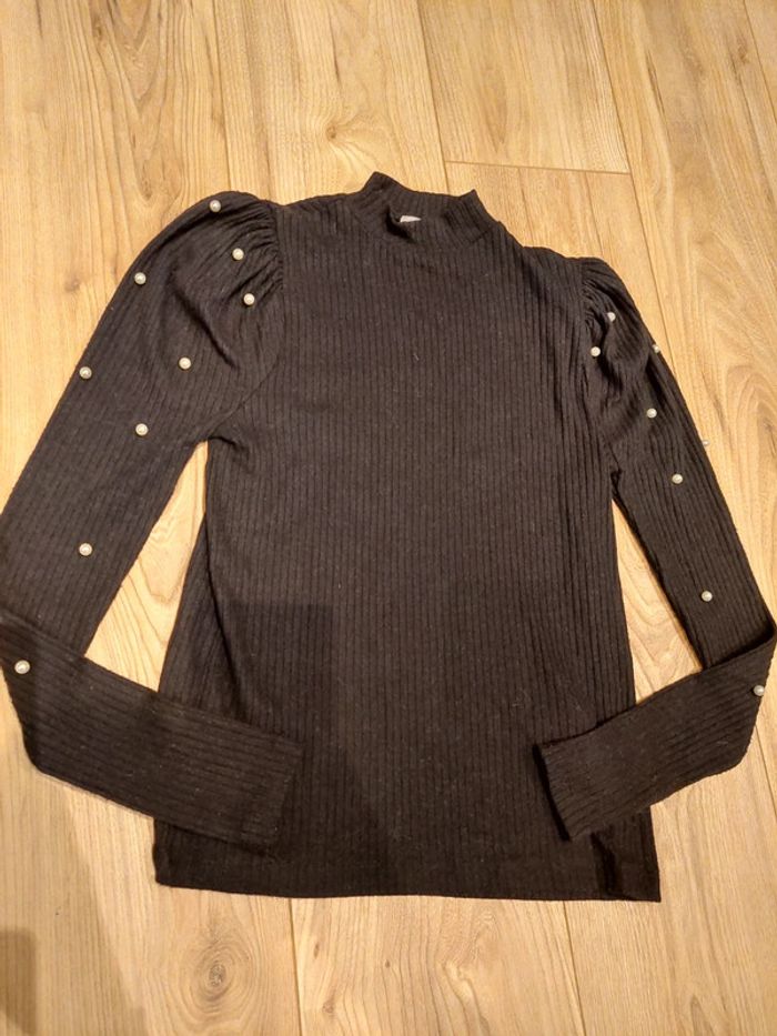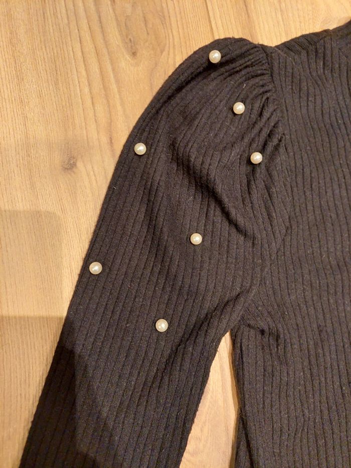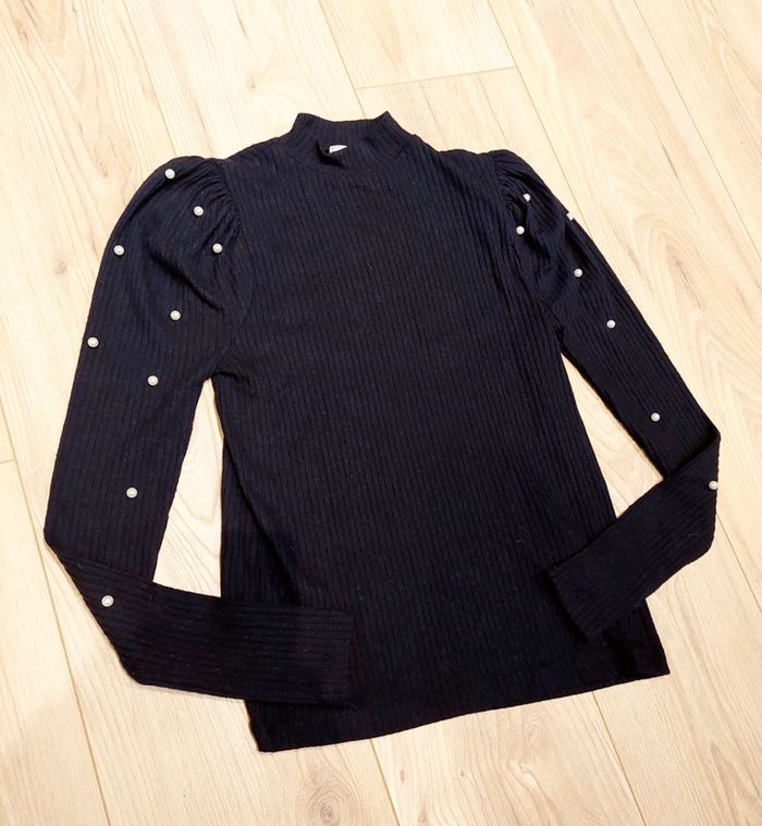 Haut manches longues Pimkie, noir, détails perles blanches, haut texturé, taille 34 XS, mis une fois comme neuf #pimkie #perles #haut