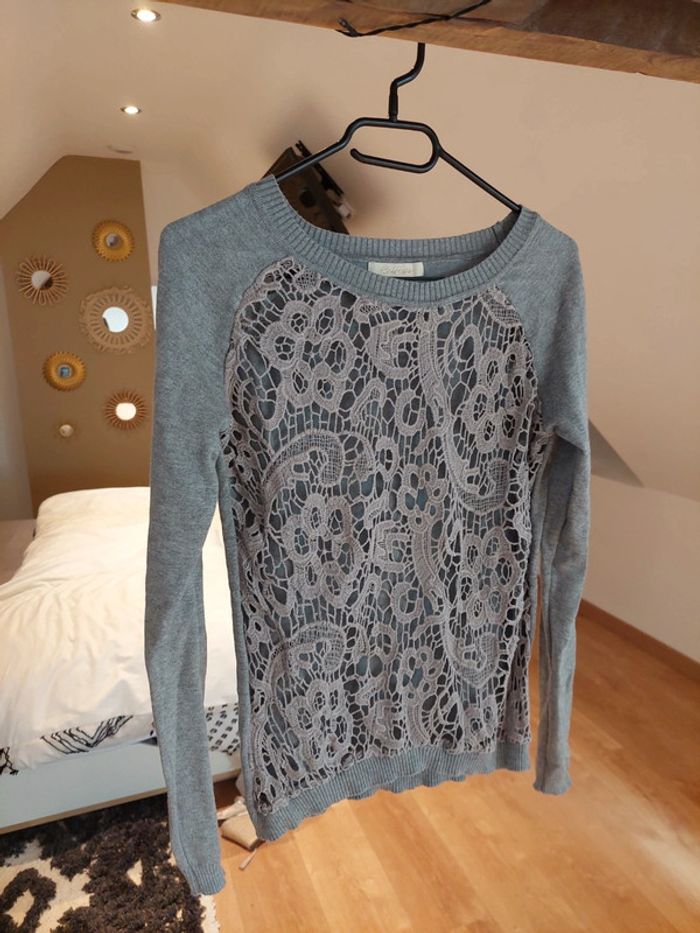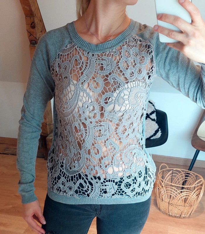 Pull dentelle gris - photo numéro 1