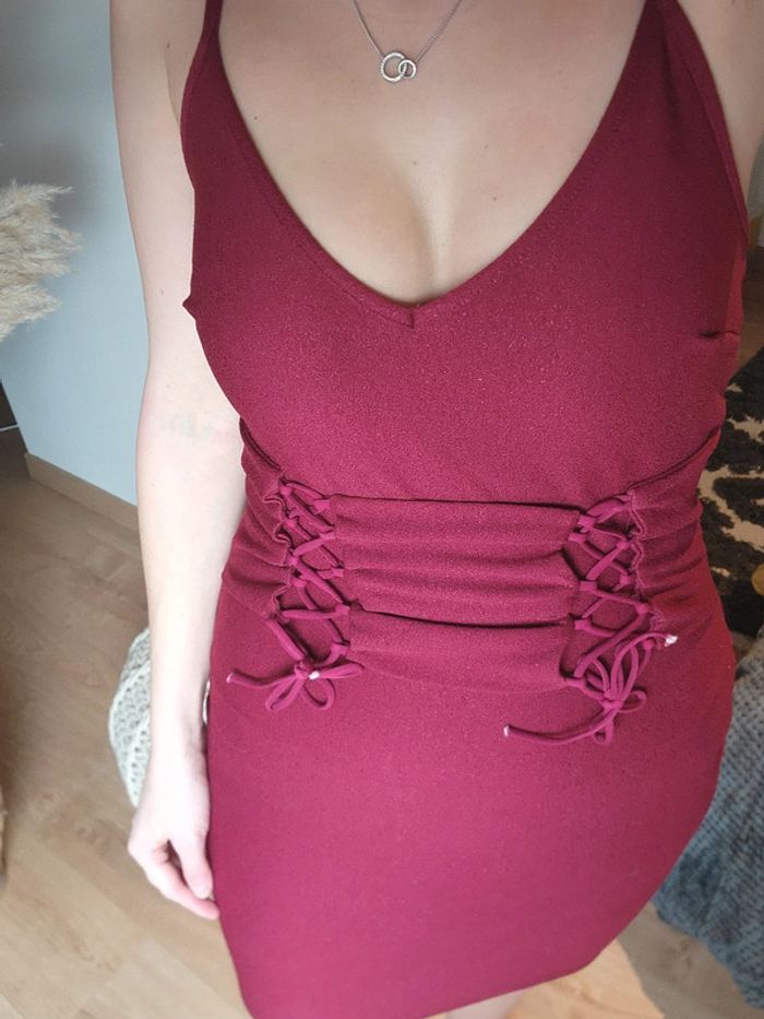 Robe Boohoo bordeaux, corset lacet à la taille, bordeaux , taille 36, neuve #boohoo #corset #bordeaux