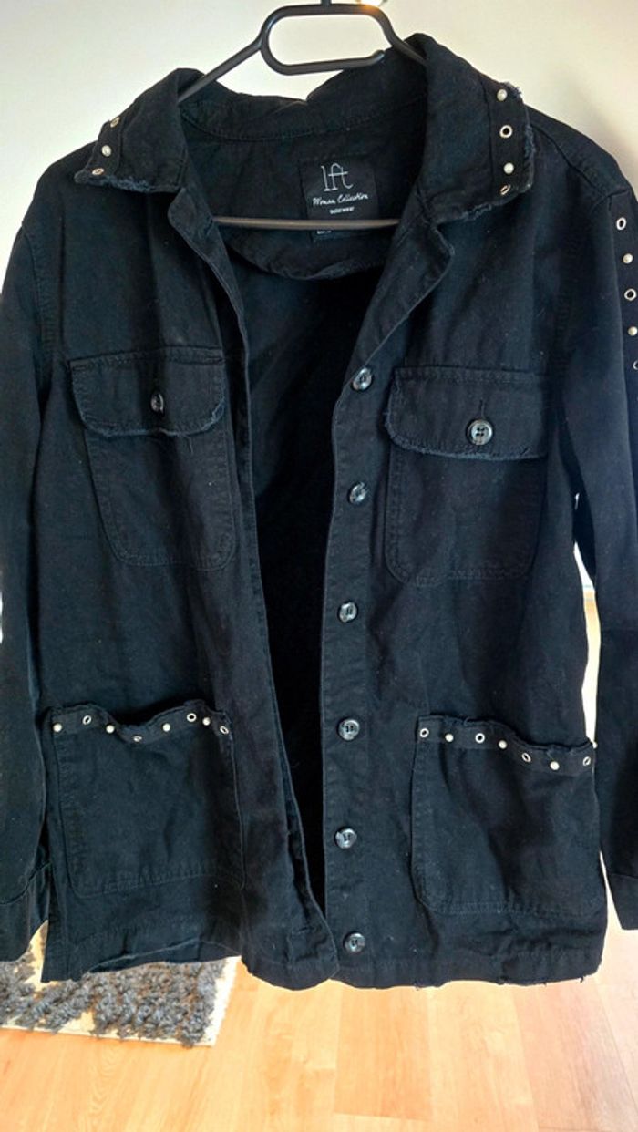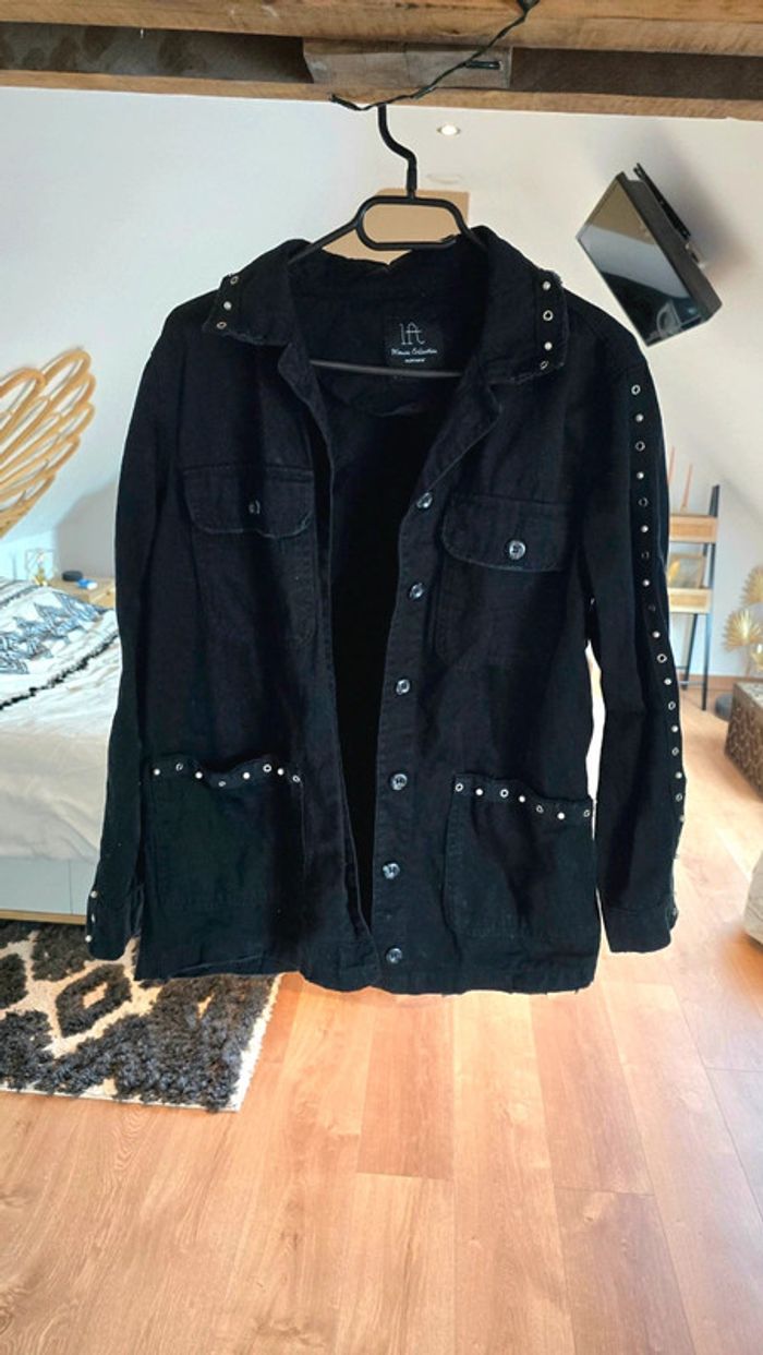 Veste Lefties noir, style chemise, détails perles et clous, boutonné, taille 36, peu portée #lefties #perles #veste