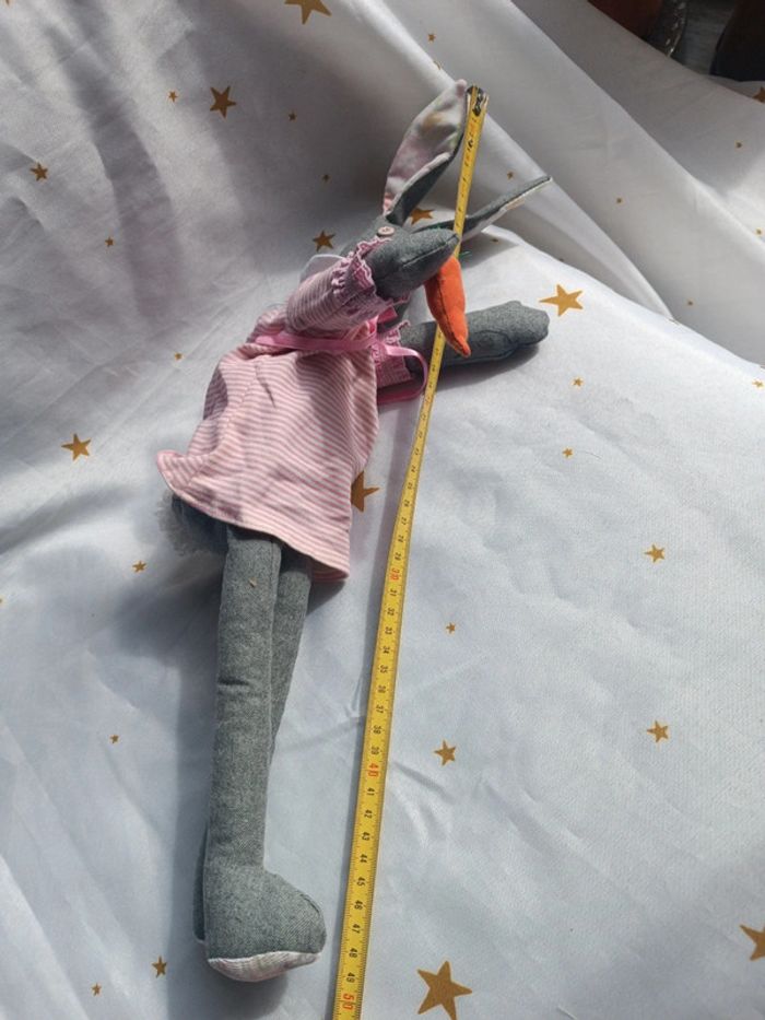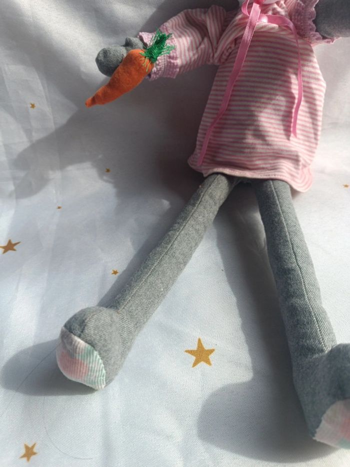 Peluche doudou plush teddy tissu grand lapin bunnies Bunny gris grey carotte poupée doll chiffon - photo numéro 7