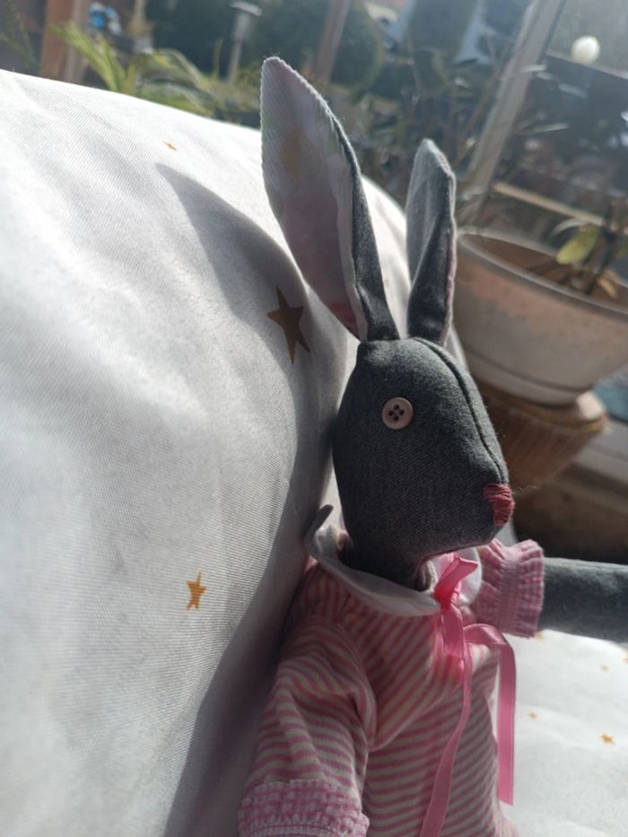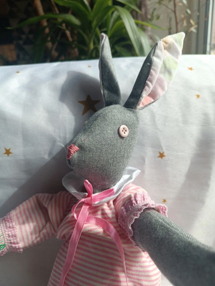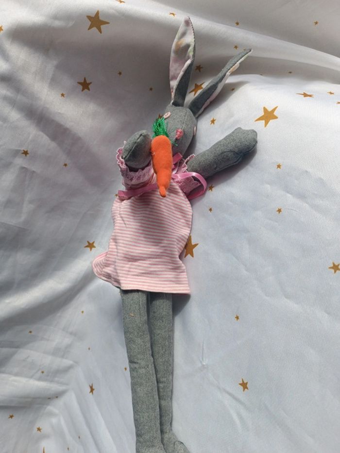 Peluche doudou plush teddy tissu grand lapin bunnies Bunny gris grey carotte poupée doll chiffon - photo numéro 3