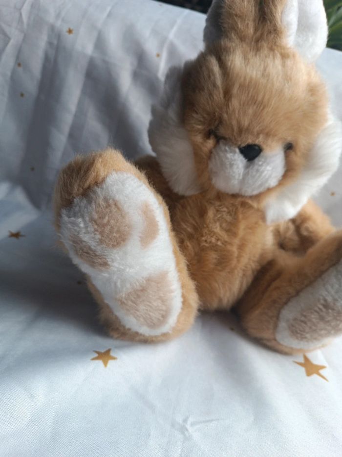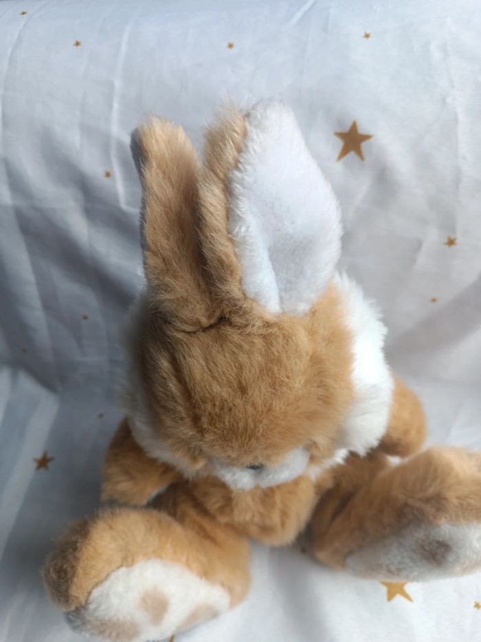 Peluche plush vth ajena lapin bunnies Bunny beige marron assis sit pâques en très bel état pour son âge