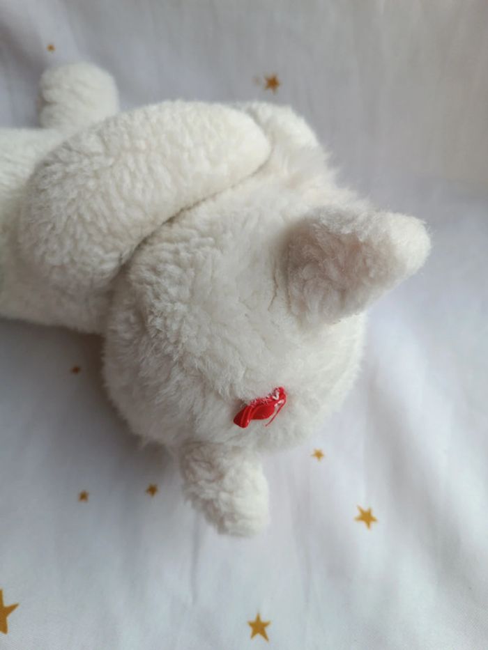 Grande peluche plush teddy blanc white rose pink yeux fermé allongé couché vintage chat cat kitties - photo numéro 6