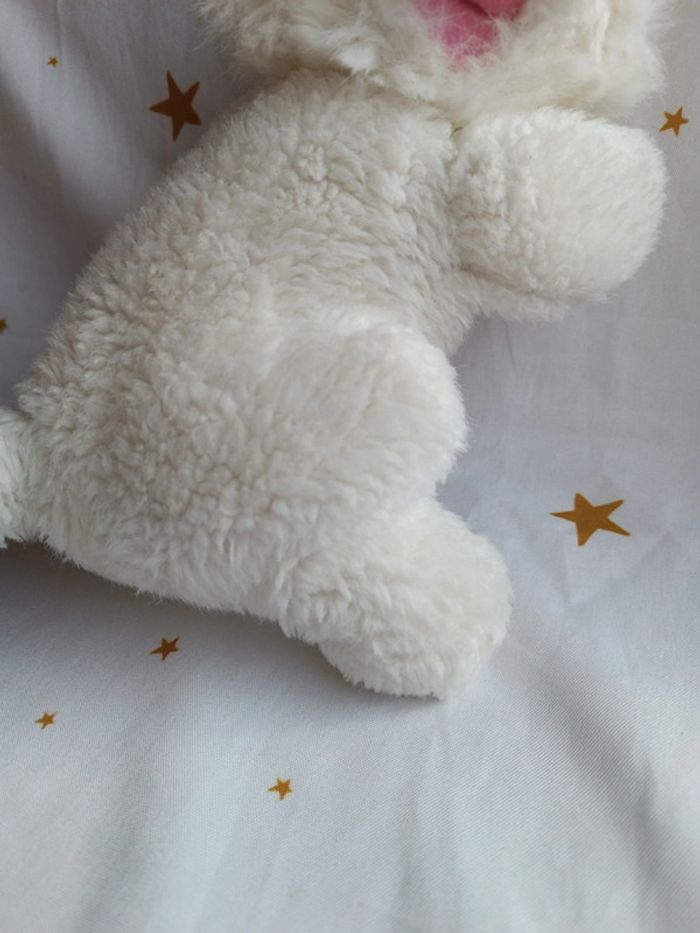 Grande peluche plush teddy blanc white rose pink yeux fermé allongé couché vintage chat cat kitties - photo numéro 12