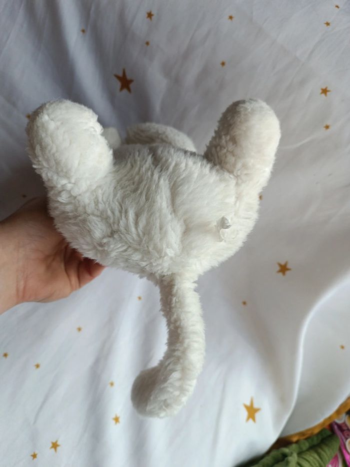 Grande peluche plush teddy blanc white rose pink yeux fermé allongé couché vintage chat cat kitties