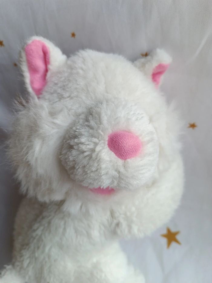 Grande peluche plush teddy blanc white rose pink yeux fermé allongé couché vintage chat cat kitties - photo numéro 10
