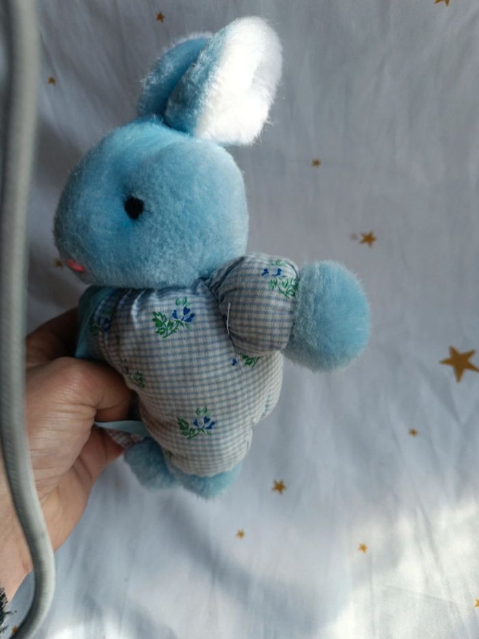 Petite peluche small doudou plush lapin bunnies Bunny bleu blue ajena vintage carreaux tissu fleur - photo numéro 9