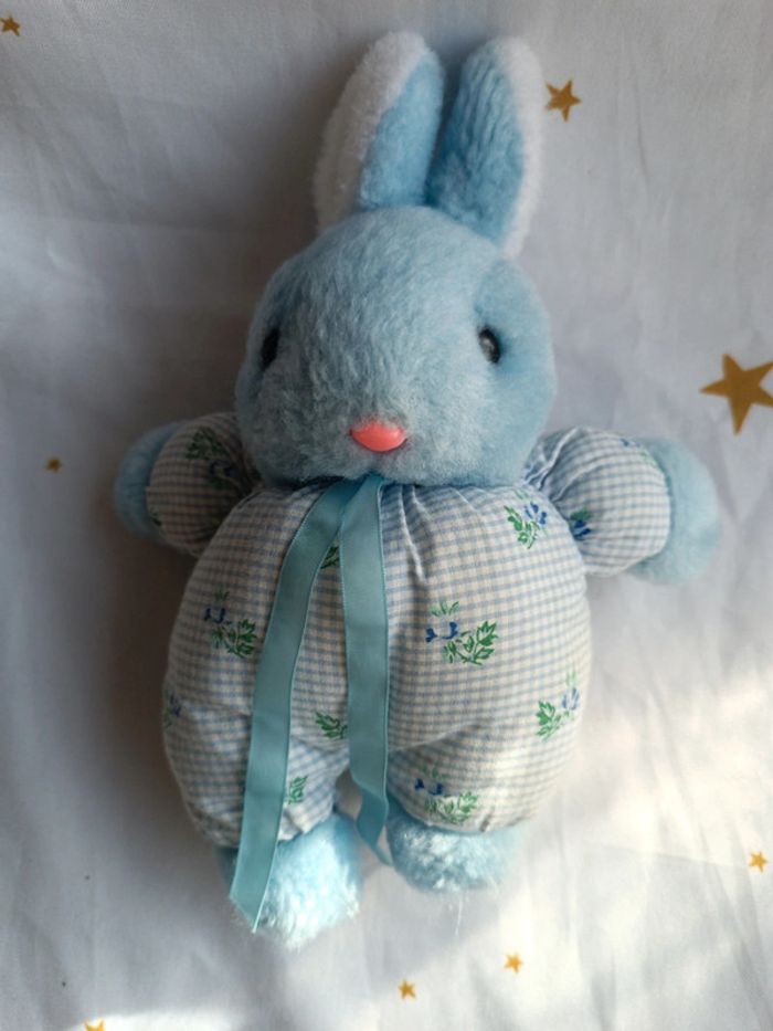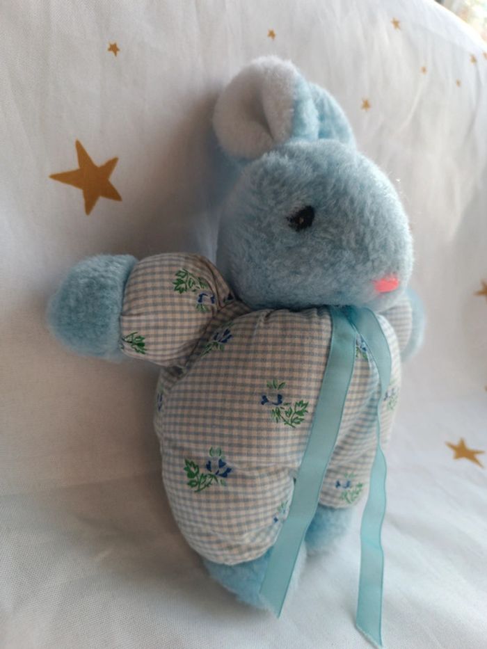 Petite peluche small doudou plush lapin bunnies Bunny bleu blue ajena vintage carreaux tissu fleur - photo numéro 1