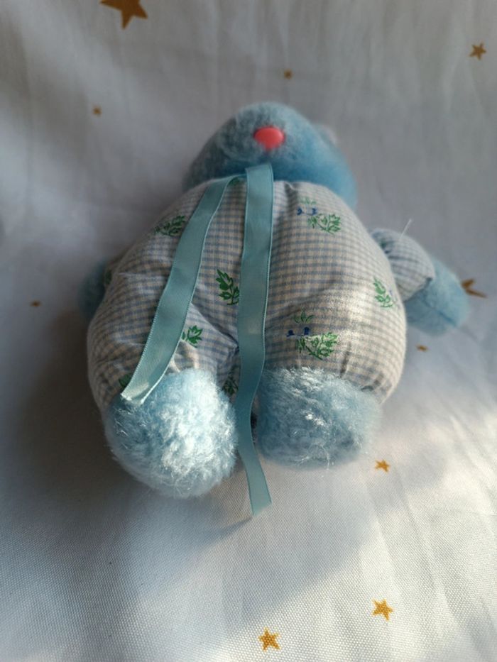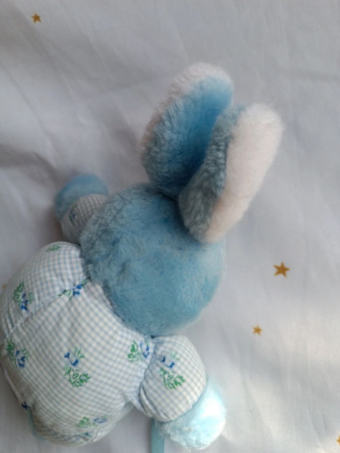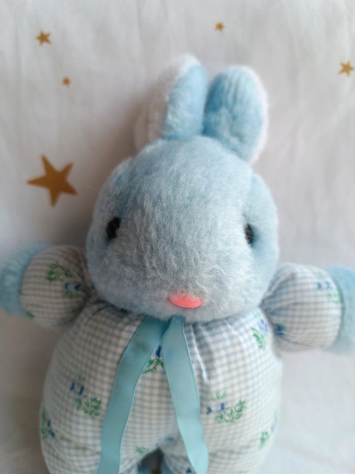 Petite peluche small doudou plush lapin bunnies Bunny bleu blue ajena vintage carreaux tissu fleur - photo numéro 3