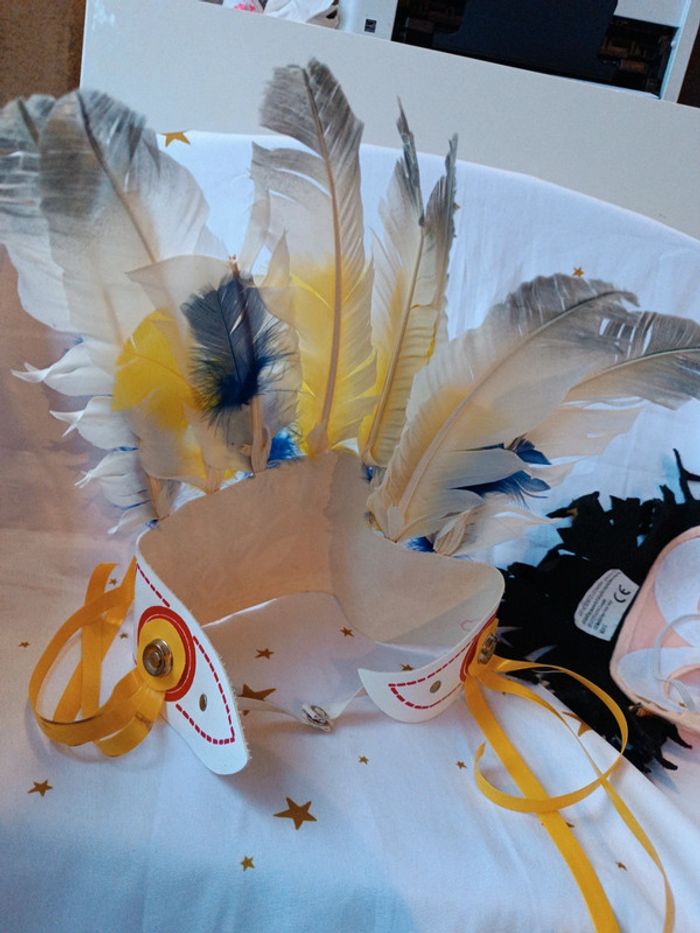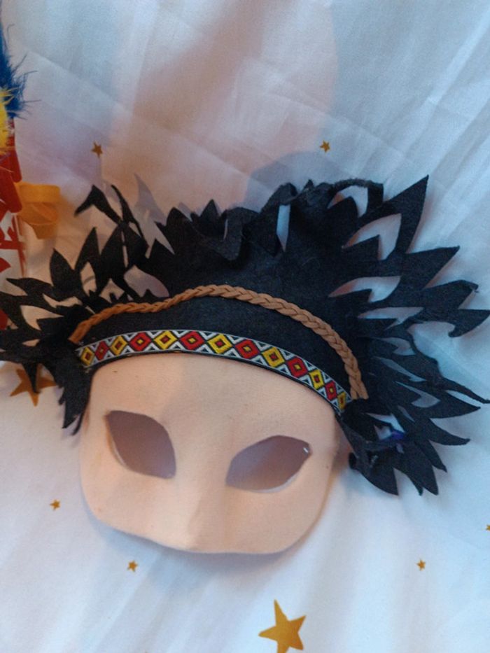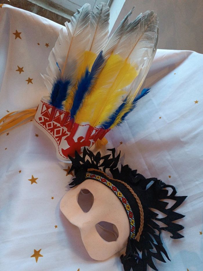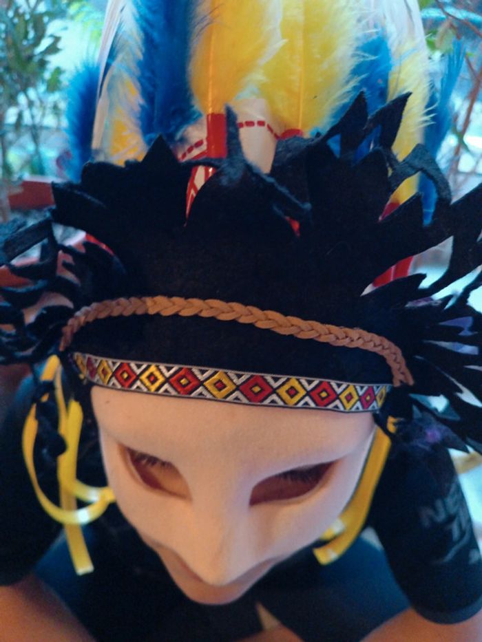 Costume déguisement masque Mask indien indienne indian haut de visage plume noir et magnifique coiffe dentelle qualité vintage avec plume jaune bleu bandeau rouge blanc type cuir chef native américan Amazonie Amérique en bon état général, marque the Cherokees ? 🌸Plusieurs articles vous intéressent ❔ ✔️Contactez moi après avoir créé votre lot une remise est accordée ( ne s'applique pas automatiquement en compte professionnel) ✨ Vous achetez ce que vous voyez 😉 ⚠️Ces jouets sont vintage ils peuvent présenter des imperfections dû à l'usage ou au temps mais sont fonctionnels les photos vous en disent plus elles complètent ce descriptif, sinon n'hésitez pas je reste disponible ! ABONNE TOI JE VAIS EN METTRE D'AUTRES 👋 #vintage #collection #Mini maison monde minuscule ancien world coffret rétro jeux jouet poupée 90 collection vintage poupée miniature univers playset set tiny