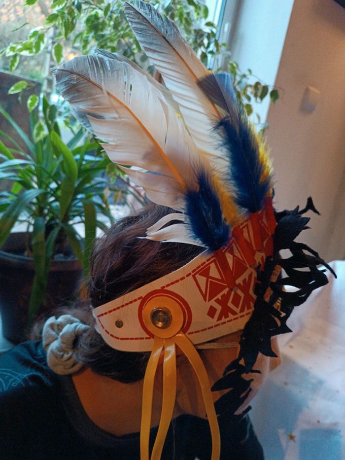 Chapeau costume déguisement indien indienne indian coiffe plume native américan Amazonie Amérique - photo numéro 1