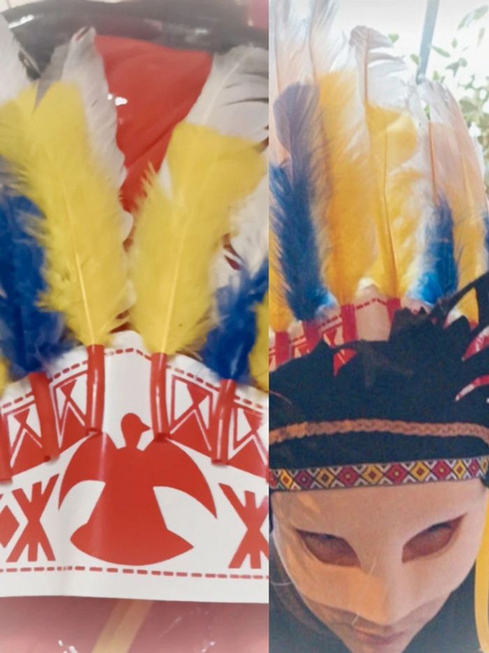 Chapeau costume déguisement indien indienne indian coiffe plume native américan Amazonie Amérique