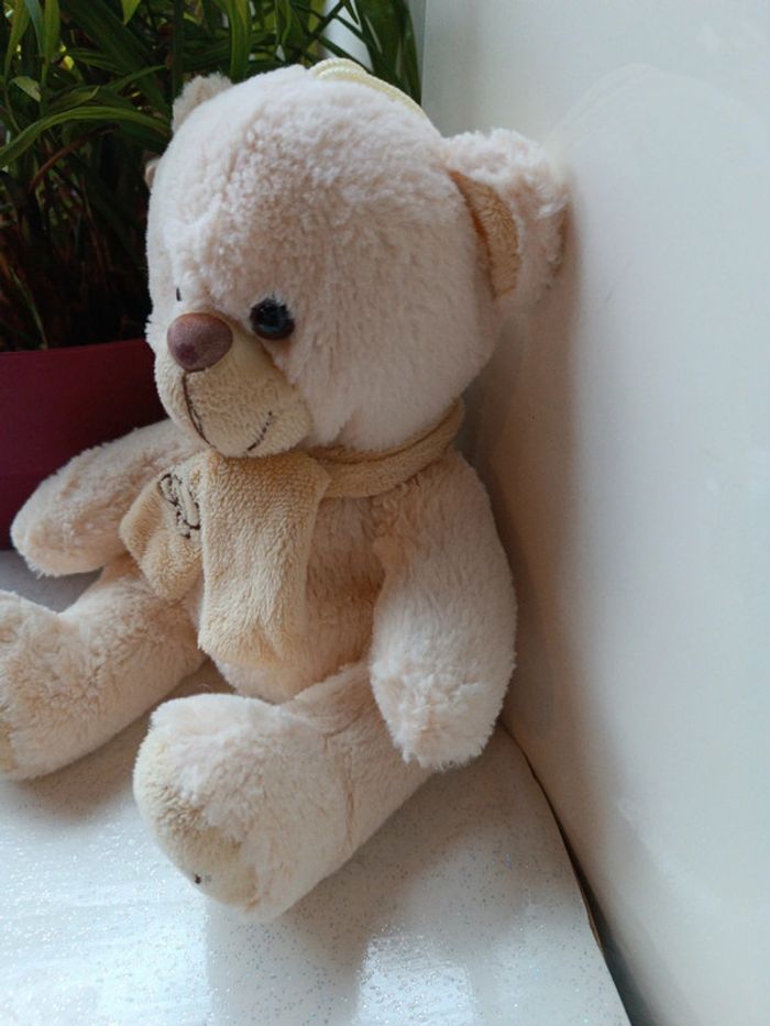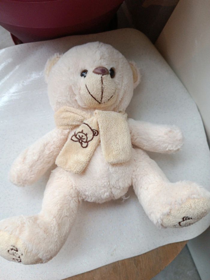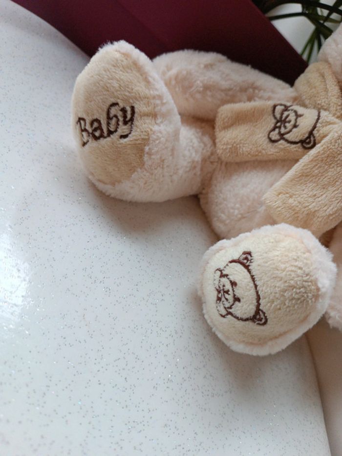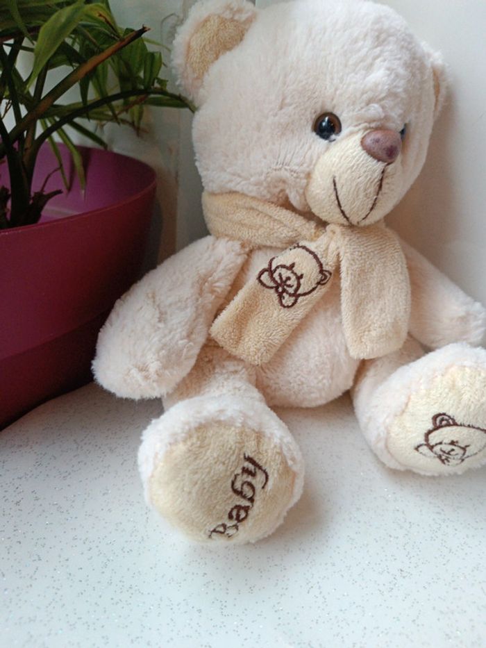 Petit ours peluche beige écru baby écharpe tout doux teddy Bear nounours plush brodé pied - photo numéro 1