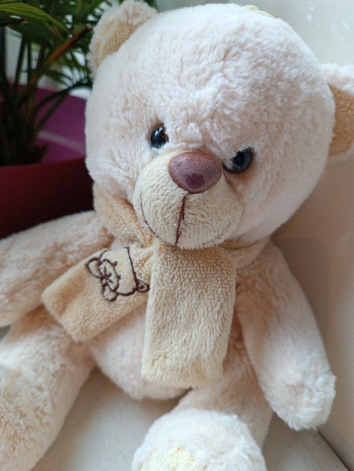 Petit ours peluche beige écru baby écharpe tout doux teddy Bear nounours plush brodé pied