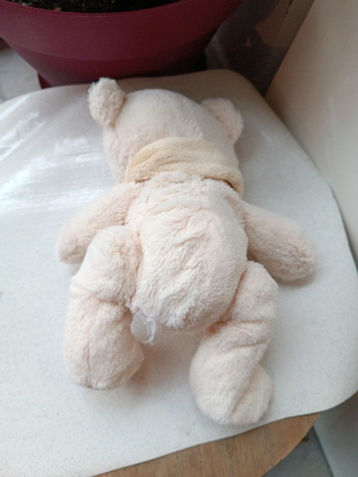 Petit ours peluche beige écru baby écharpe tout doux teddy Bear nounours plush brodé pied - photo numéro 8