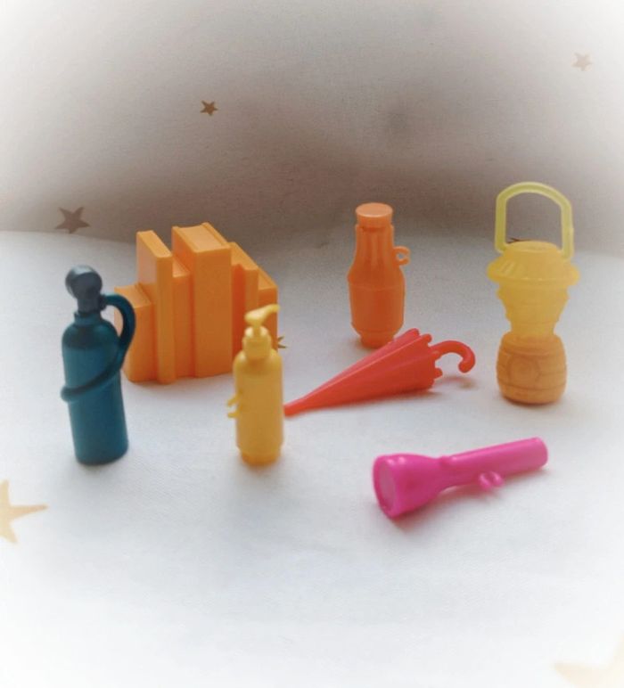 Accessoires accessorie barbie playmobil lampe torche light camper livre Book extincteur parapluie tel que sur les photos Prix pour le lot indissociable 🌸Plusieurs articles vous intéressent ❔ ✔️Contactez moi je vous créerais votre lot avec remise ✨ Vous achetez ce que vous voyez 😉 ⚠️Ces jouets sont vintage ils peuvent présenter des imperfections dû à l'usage ou au temps mais sont fonctionnels les photos vous en disent plus elles complètent ce descriptif, sinon n'hésitez pas je reste disponible ! ABONNE TOI JE VAIS EN METTRE D'AUTRES 👋 #vintage #collection #poly  #polypoket #poket # #polypocket Mini maison monde minuscule ancien world coffret rétro jeux jouet poupée 90 collection vintage poupée miniature univers playset set tiny