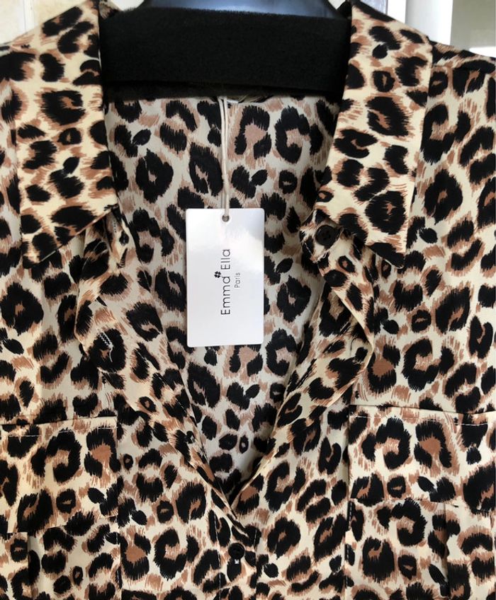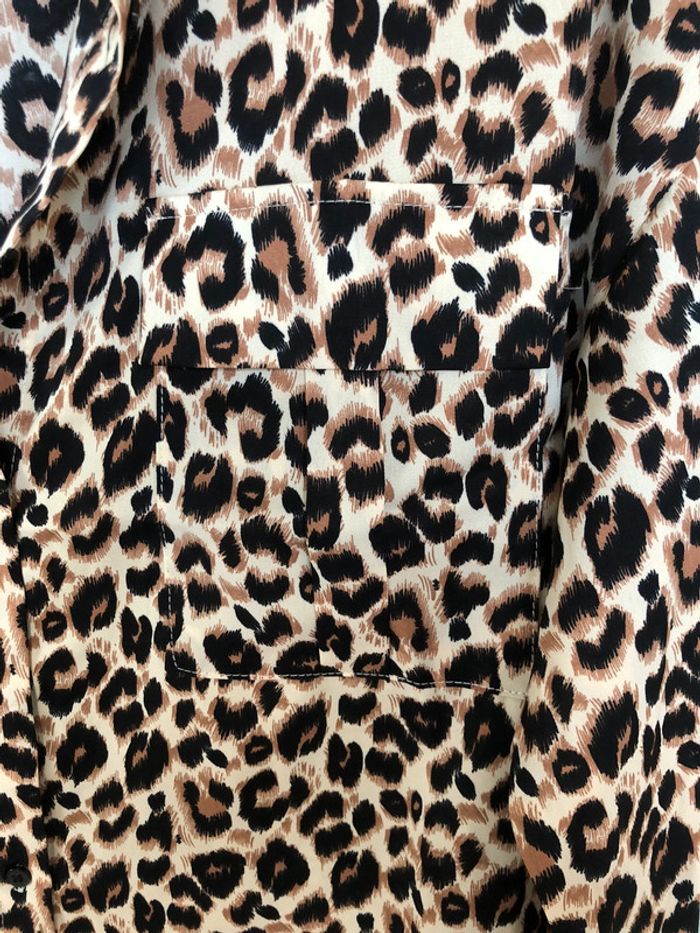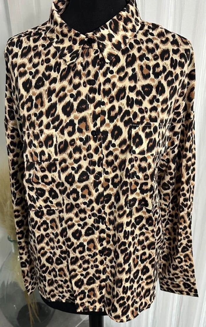 Chemise fluide très class/décontractée Coupe droite Peut se porter oversize Coloris: fond beige 💛🤎🖤 / Léopard 🐆 2 poches sur la poitrine 100% polyester Taille L Largeur épaule 62cm Largeur sous aisselles 60cm Longueur 62cm Neuf avec étiquette