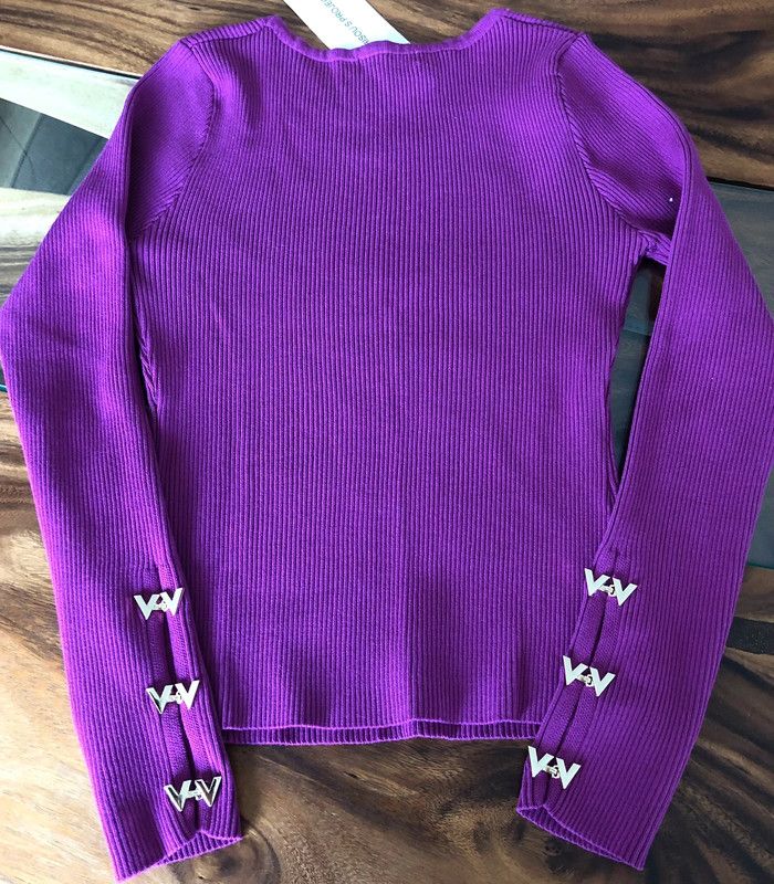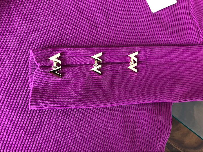 Incontournable pour automne/hiver Class / décontracté Pull extensible près du corps 3 boutons crochets sur les manches 70% viscose 30% polyamide Taille M Longueur 51cm Largeur sous aisselles mini 36cm / maxi 47cm Neuf avec étiquette Coloris : rose violet magenta (comme photo 2)