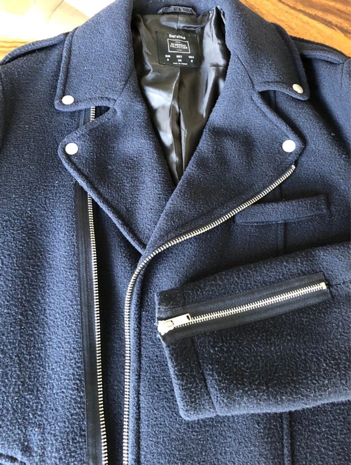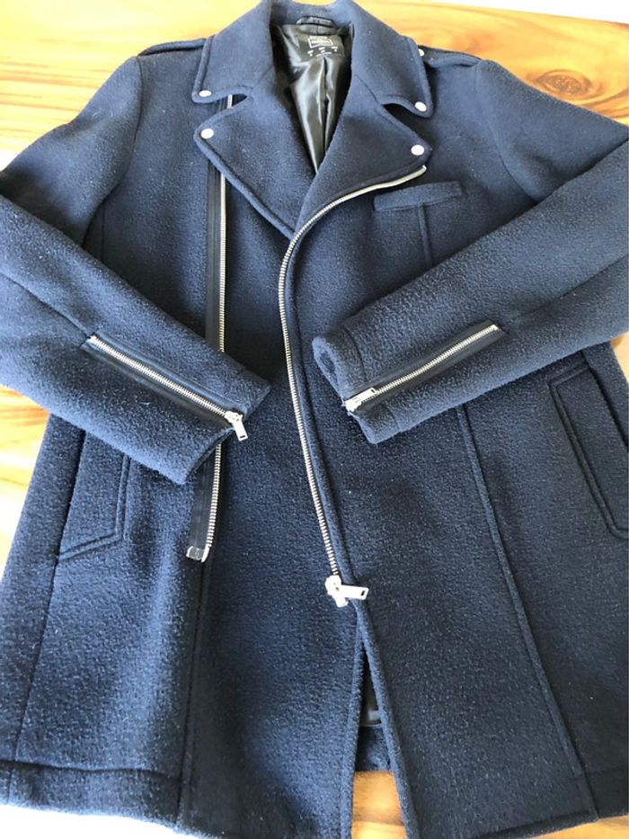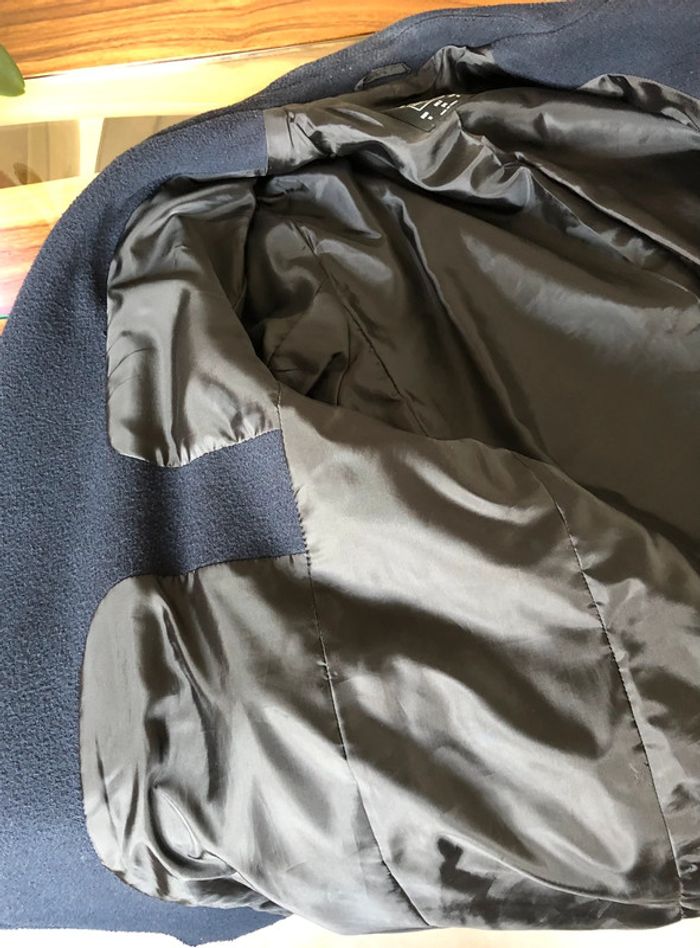 Très beau manteau Class / décontracté / sportwear Coupe droite Coloris : Marine Col avec boutons pressions Fermeture croisée par fermeture zippée 2 poches devant 1 poche intérieure 80% polyester % viscose Doublure 100% polyester Très peu porté Taille M Longueur 86cm Largeur sous aisselles 52cm Largeur épaule 42cm