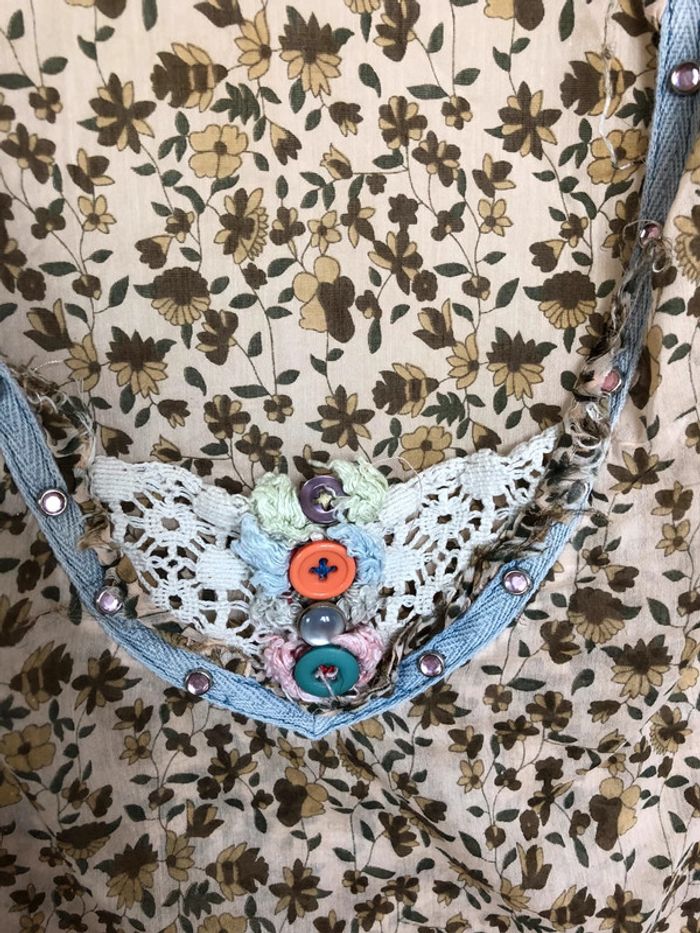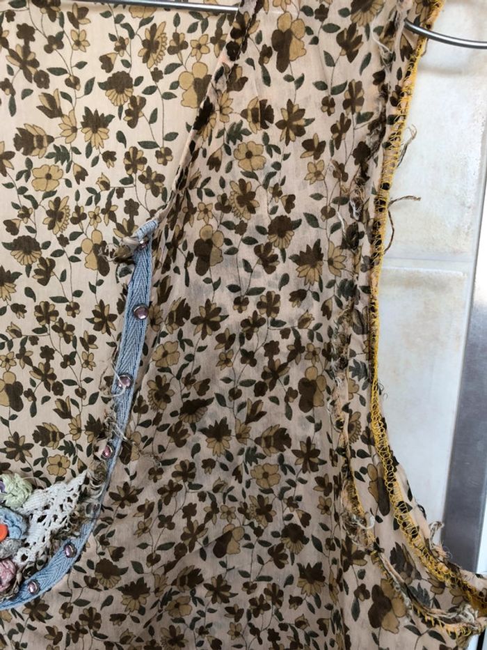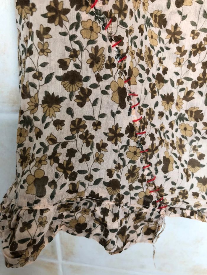 très belle blouse style bohème transparente très bon état taille L coloris : fond beige / fleurs kakis et marrons boutique indépendante 100 % coton marque : Varno